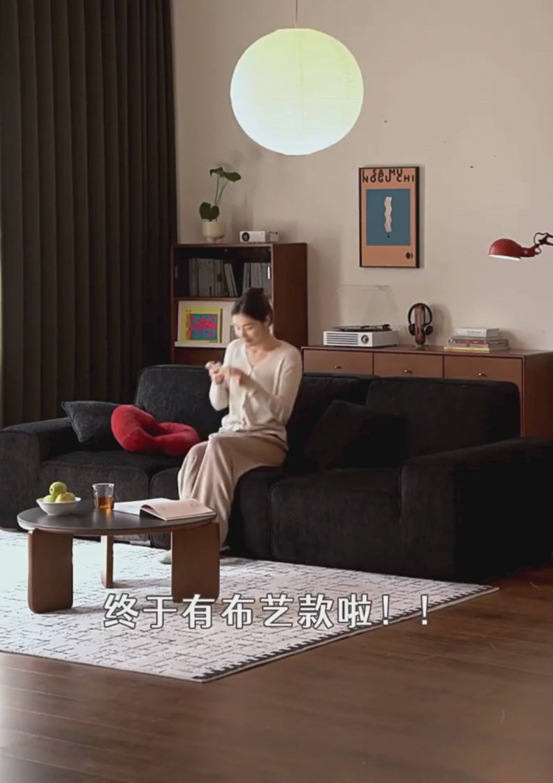 Black Walnut, Oak Solid Wood Fabric High-Back Sofa
