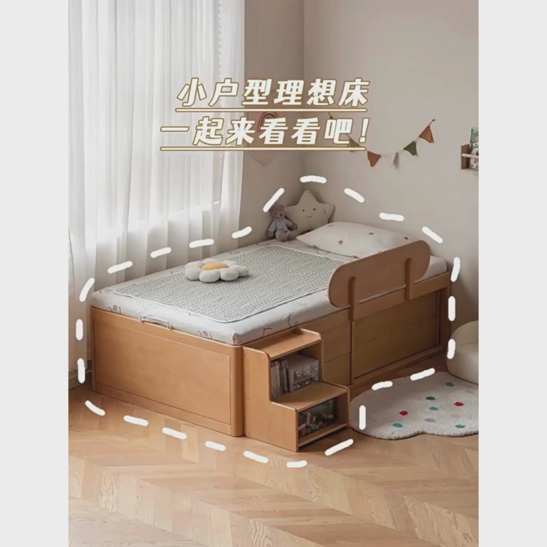 Beech Solid Wood Children's Night Light Storage Loft Bed