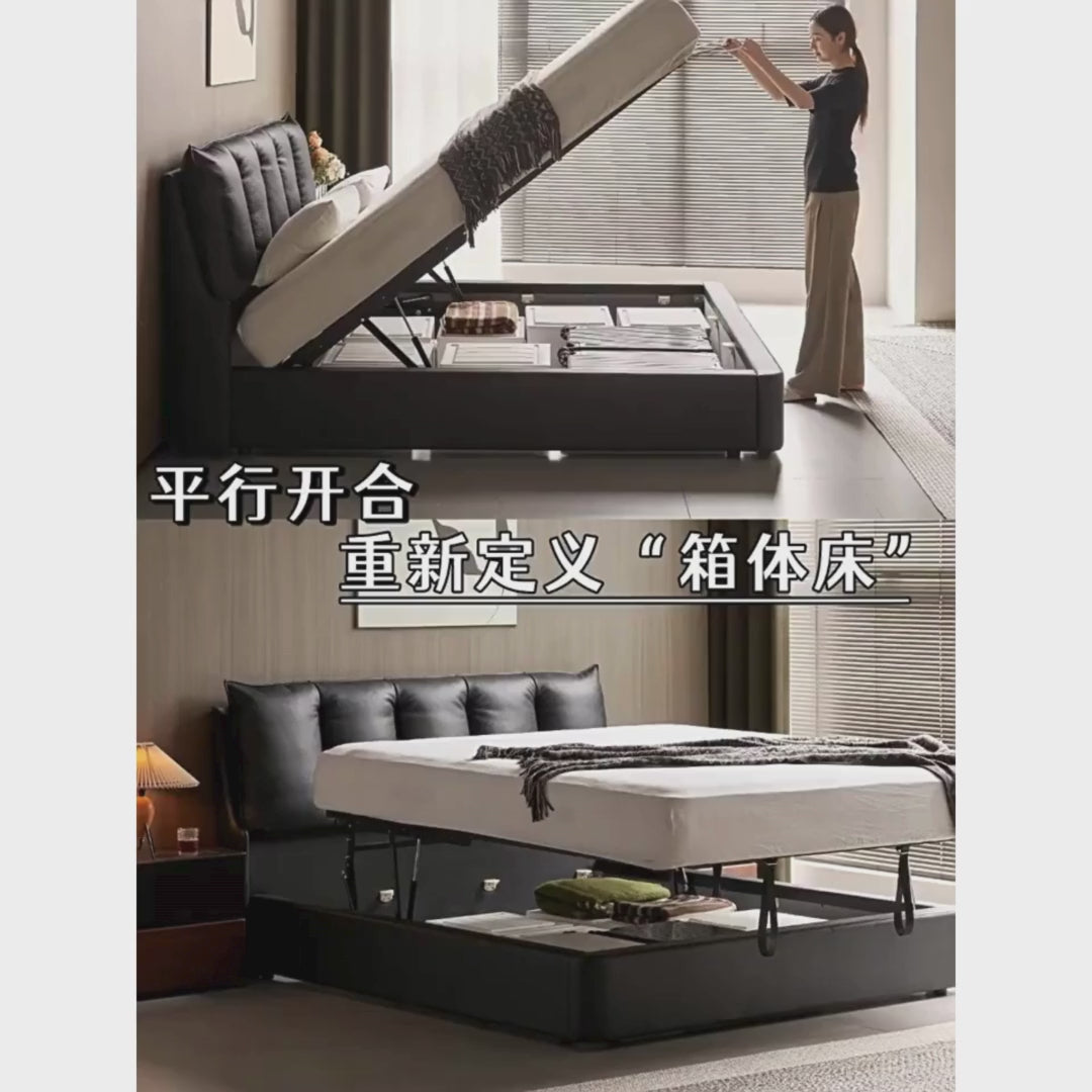 Black Walnut Solid Wood Box Bed — Italian Light Luxury, Genuine Leather Upholstered HeadboardBlack Walnut Solid Wood Box Bed — Italian Light Luxury, Genuine Leather Upholstered Headboard