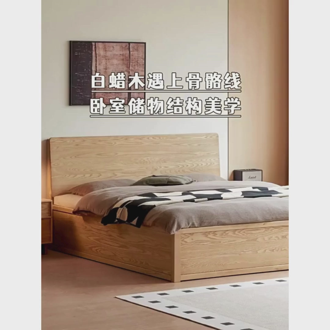 Ash Solid Wood Electric Storage Box Bed — Modern Minimalist Design