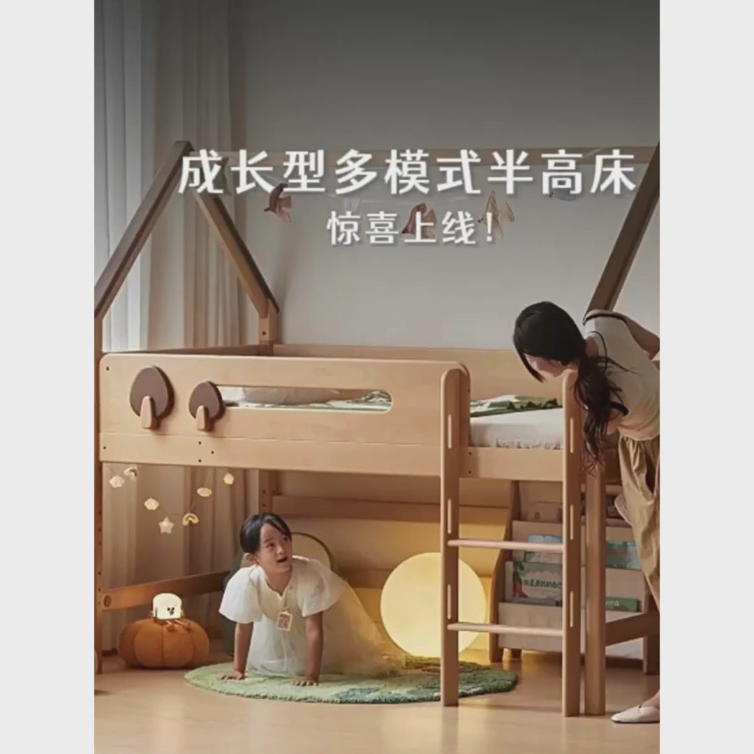 Oak,  Beech solid wood Multi-functional Bunk Bed.