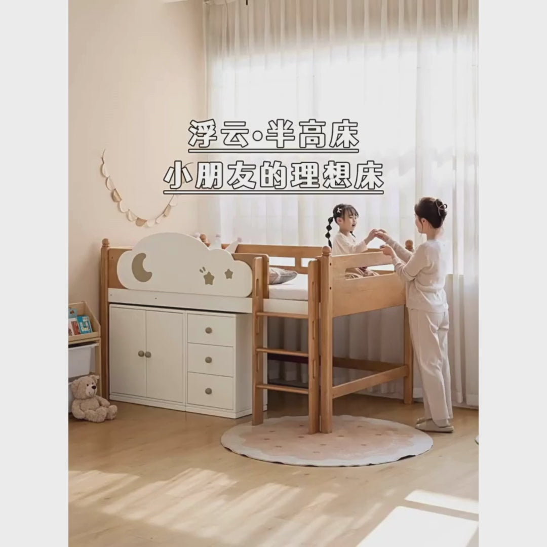 Beech Solid Wood Mother and Child Trolley Bunk Bed, loft bed