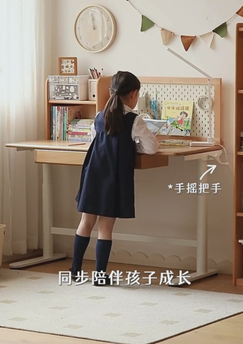 Beech Solid Wood Hand-Cranked Kids Lifting Table Board Shelf DIY