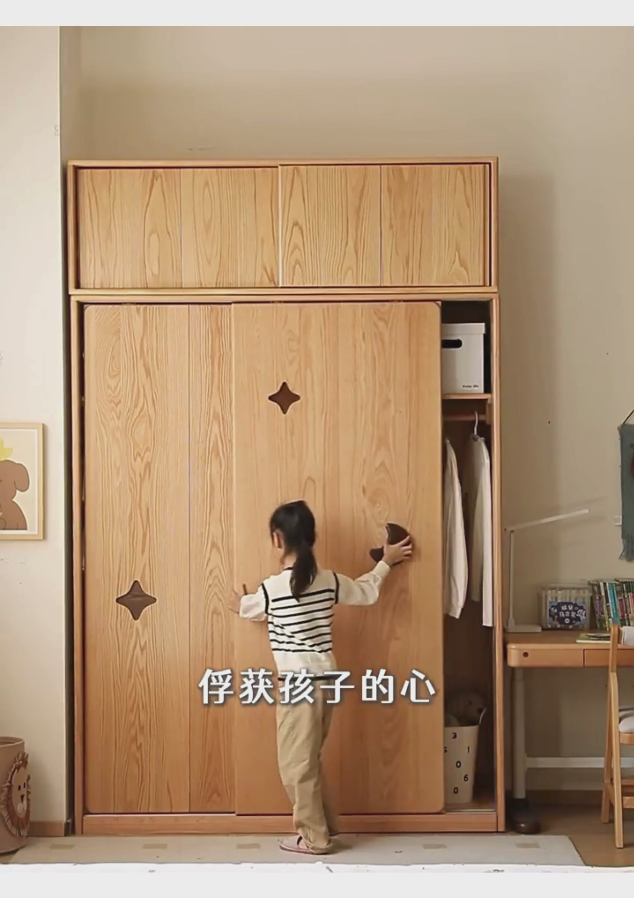 Oak Solid Wood Multi-functional Kids Wardrobe