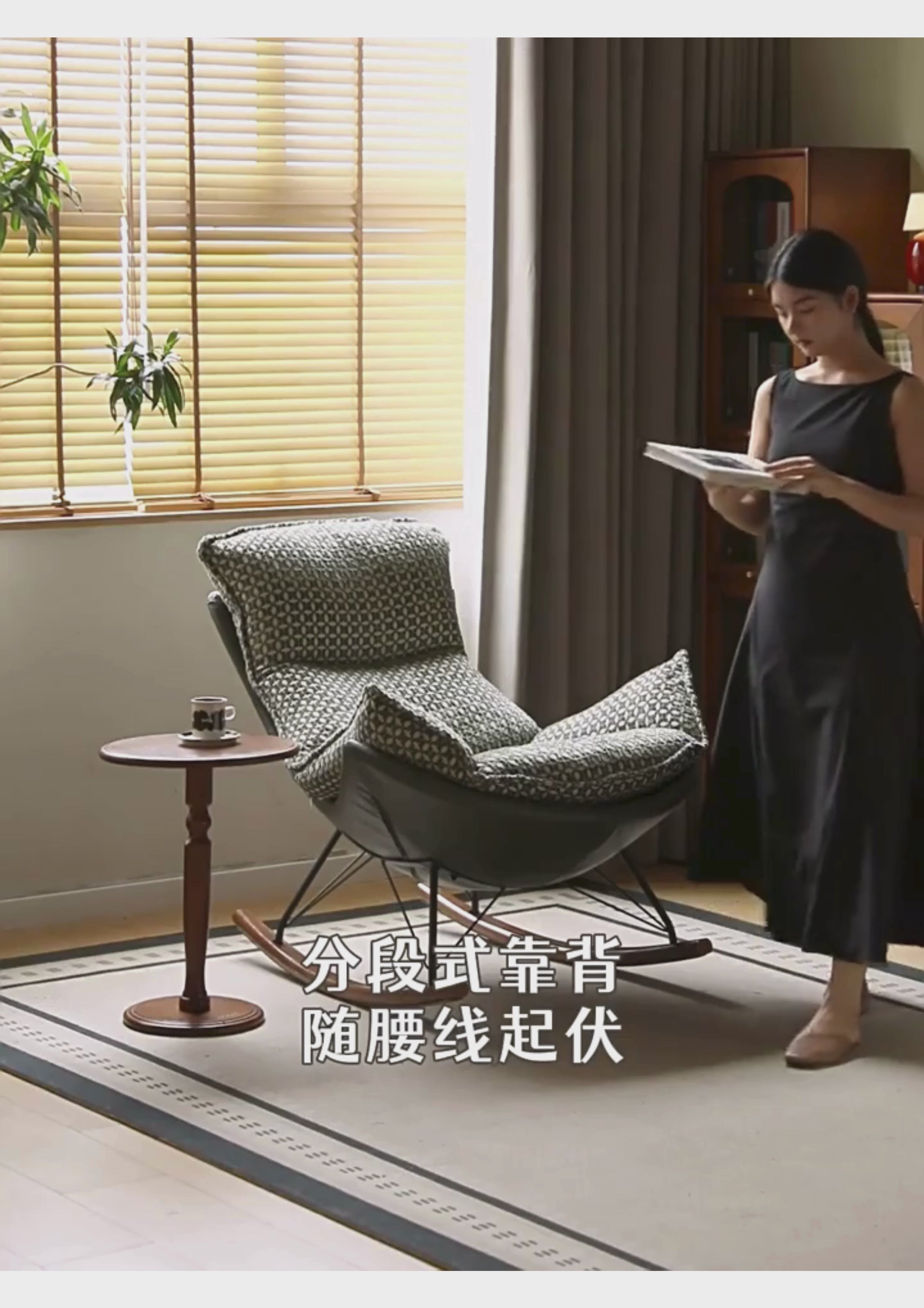 Egg Shell Lounge Chair with Rocking Base, Upholstered Cocoon Accent Chair Beech Legs