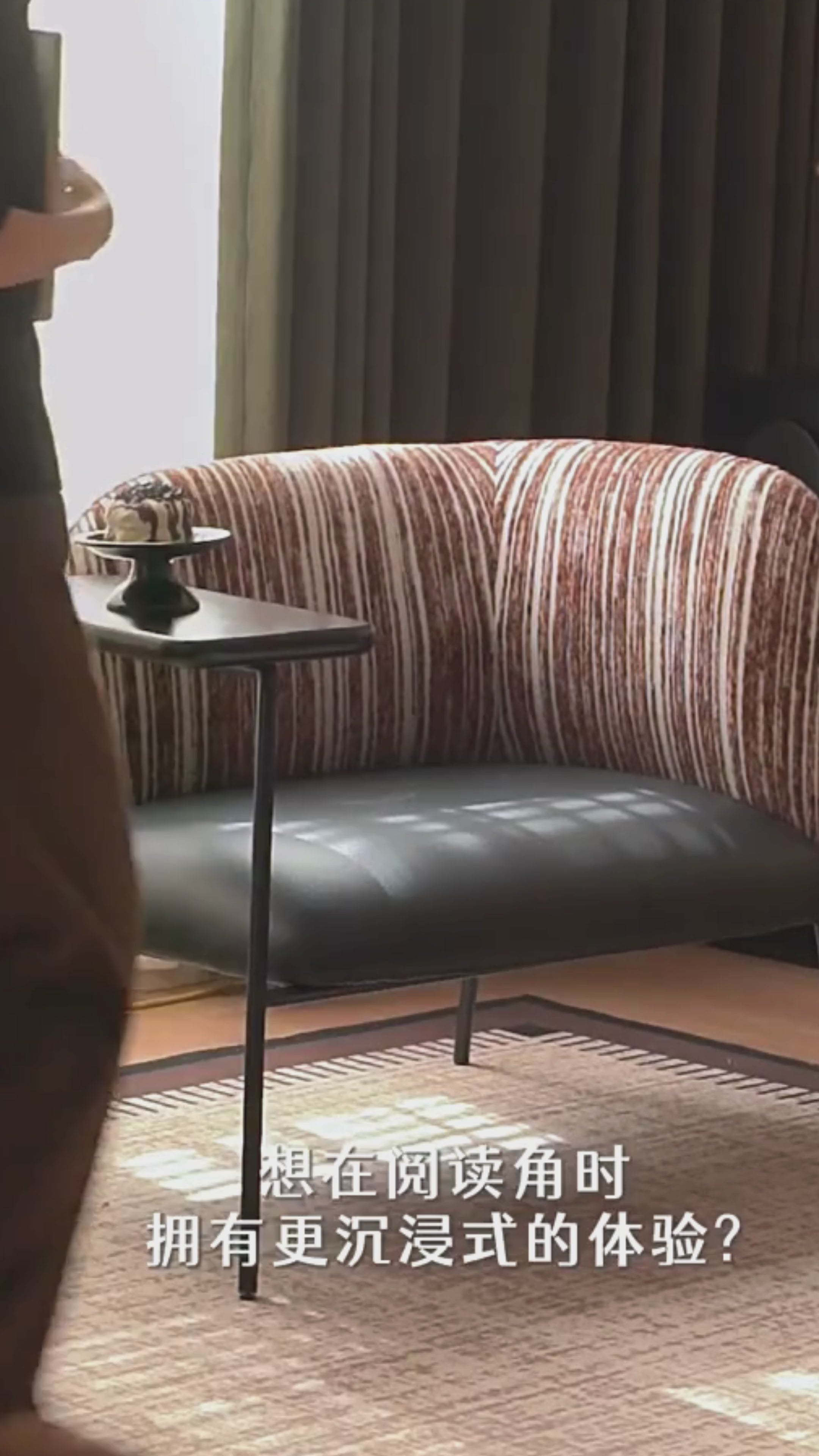 Modern Lounge Chair with Integrated Side Table, Upholstered Wraparound Accent Chair with Metal Frame