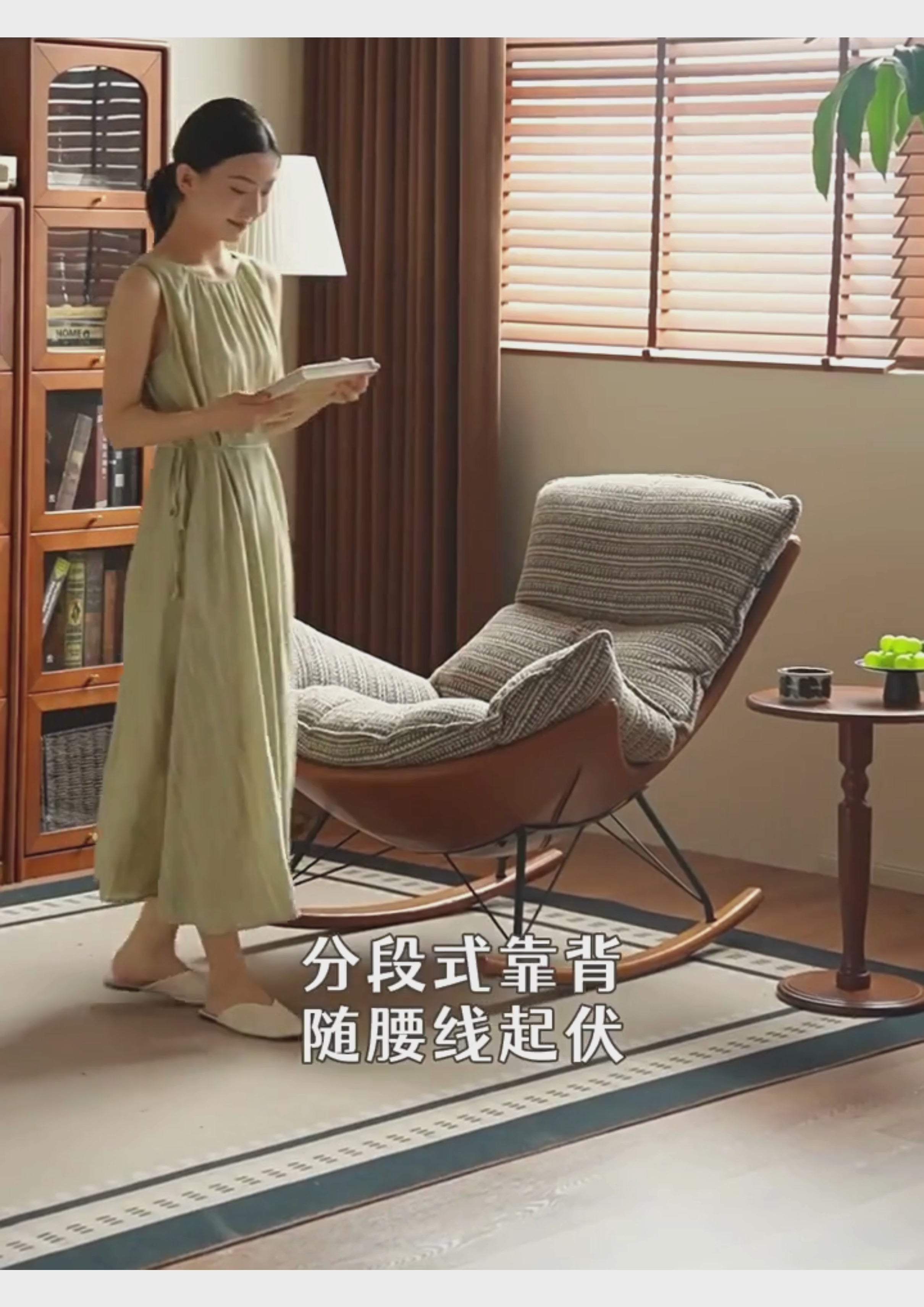Ash Solid Wood Mid-Century Modern Rocking Accent Chair with Bentwood Frame