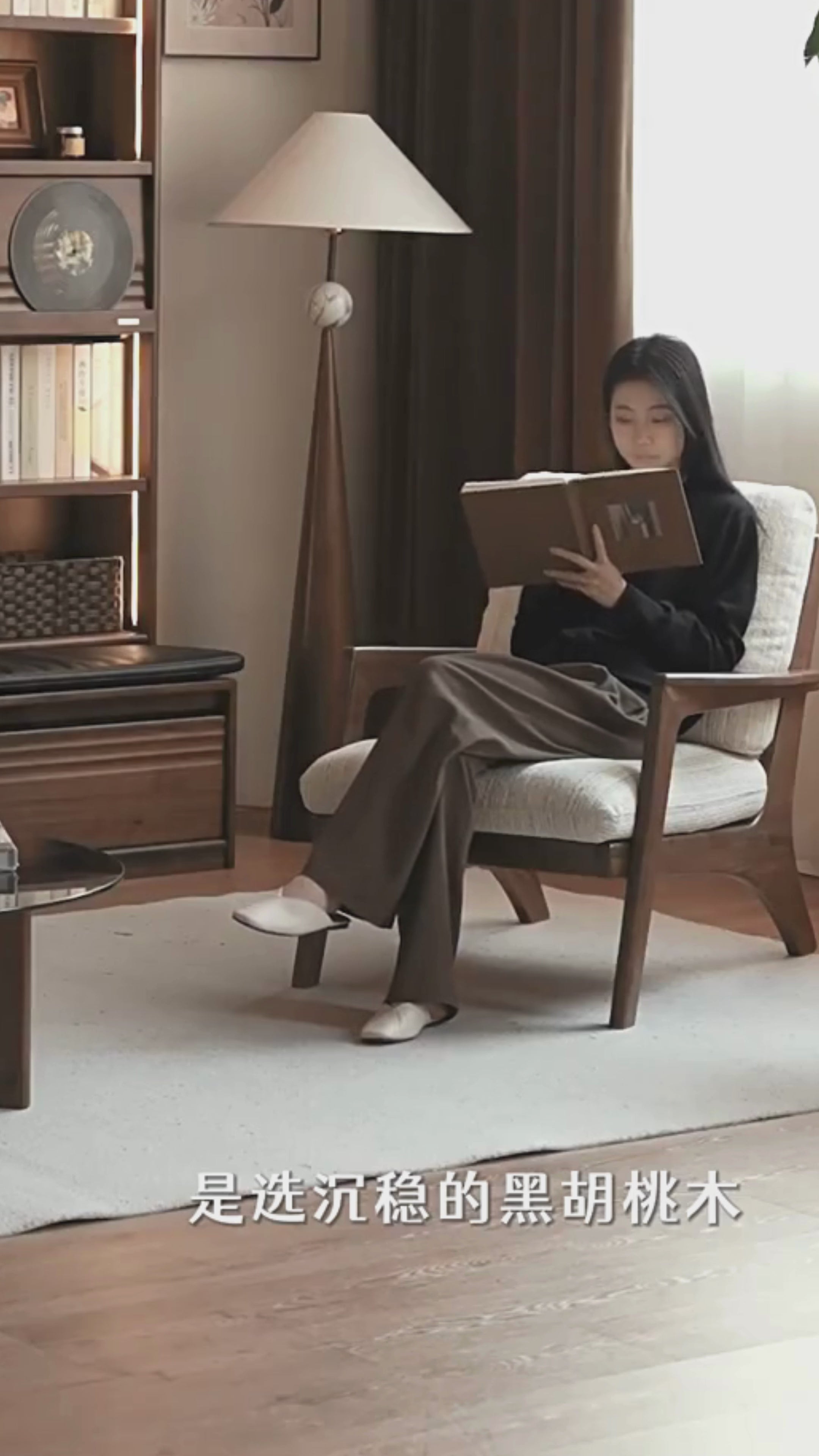 Black Walnut Solid Wood Light Luxury Style Soft Armchair.