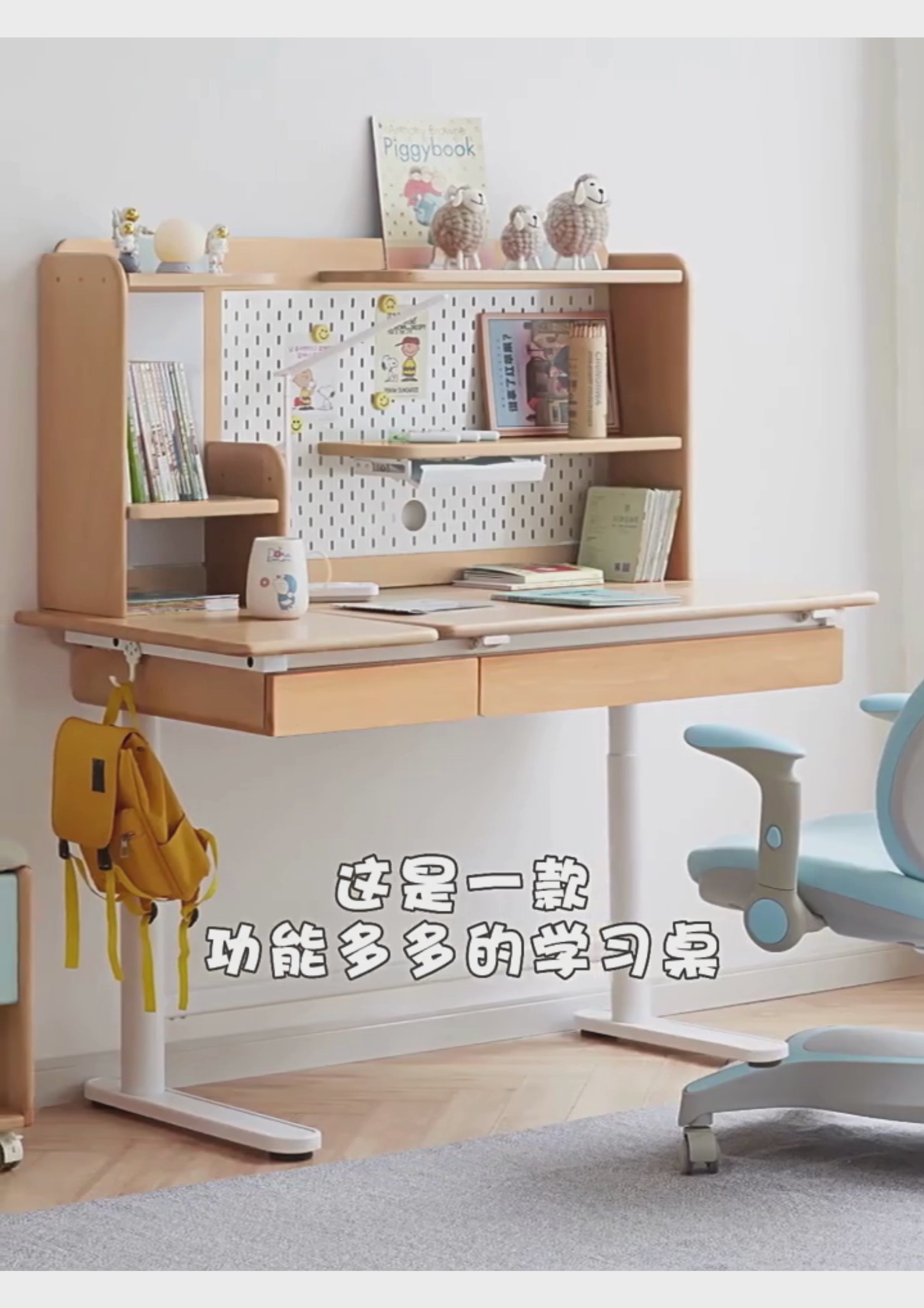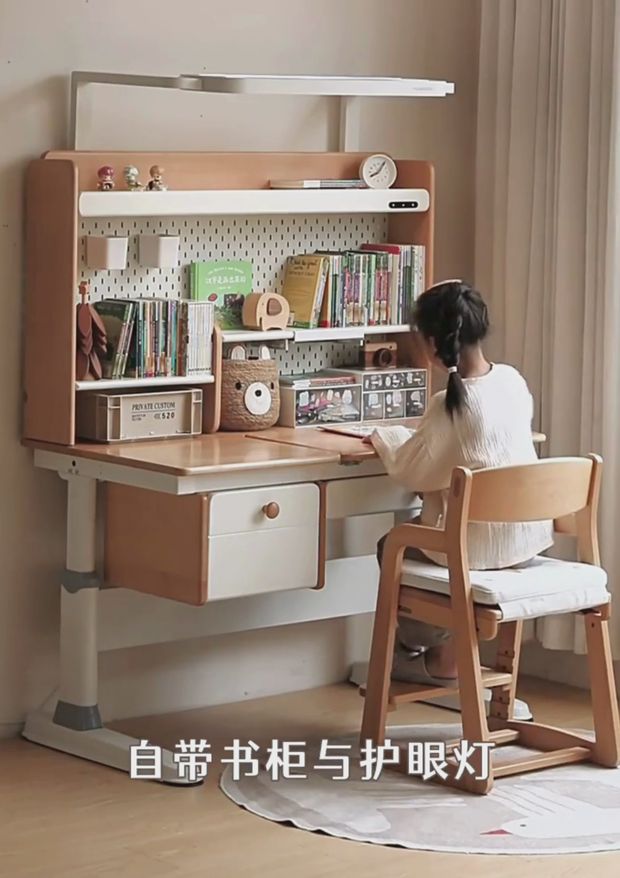 Beech Solid Wood Height Adjustable Children's Learning Desk with Eye-Protection Lamp