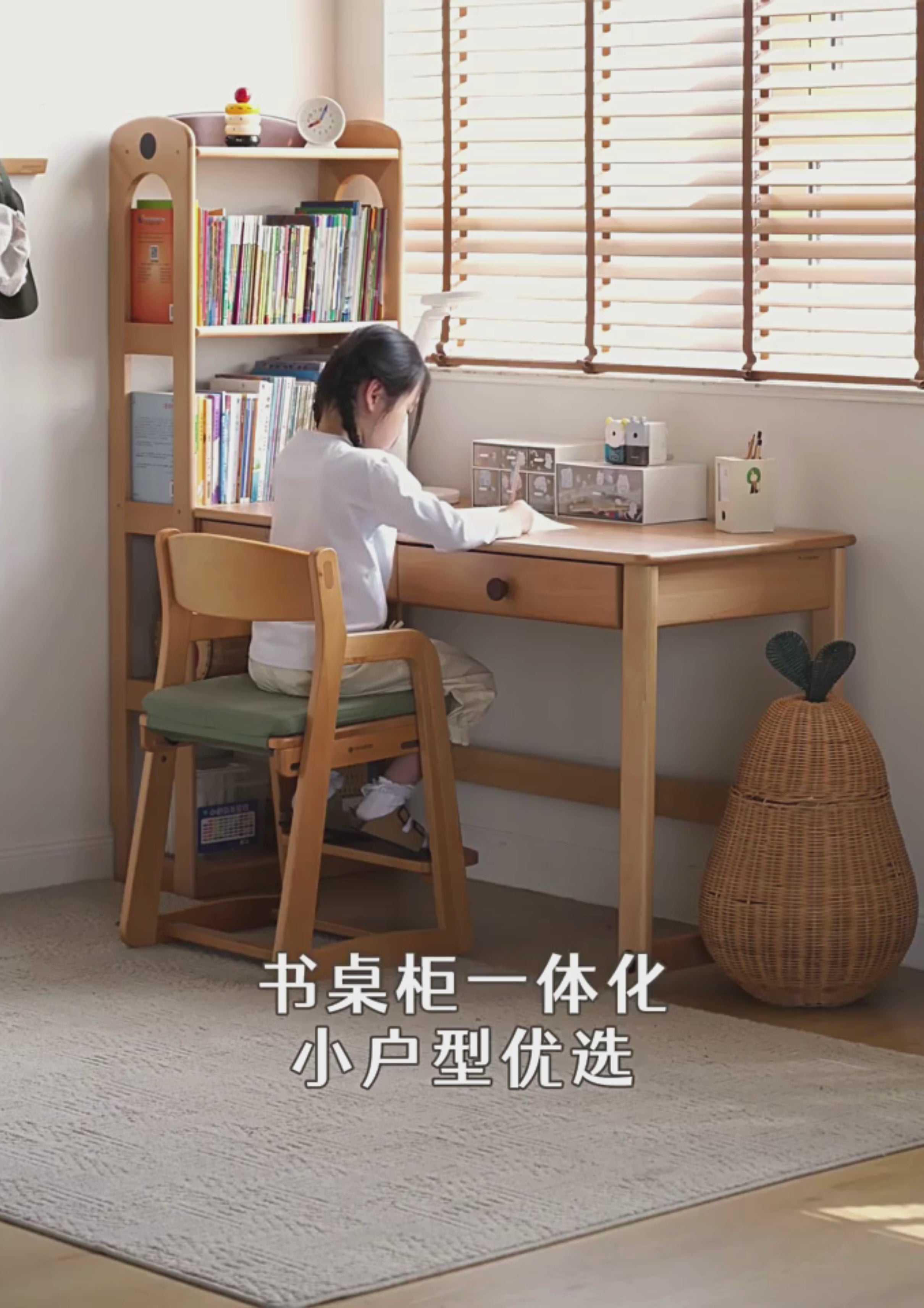 Beech Solid Wood Children's Learning Desk Bookshelf Integrated