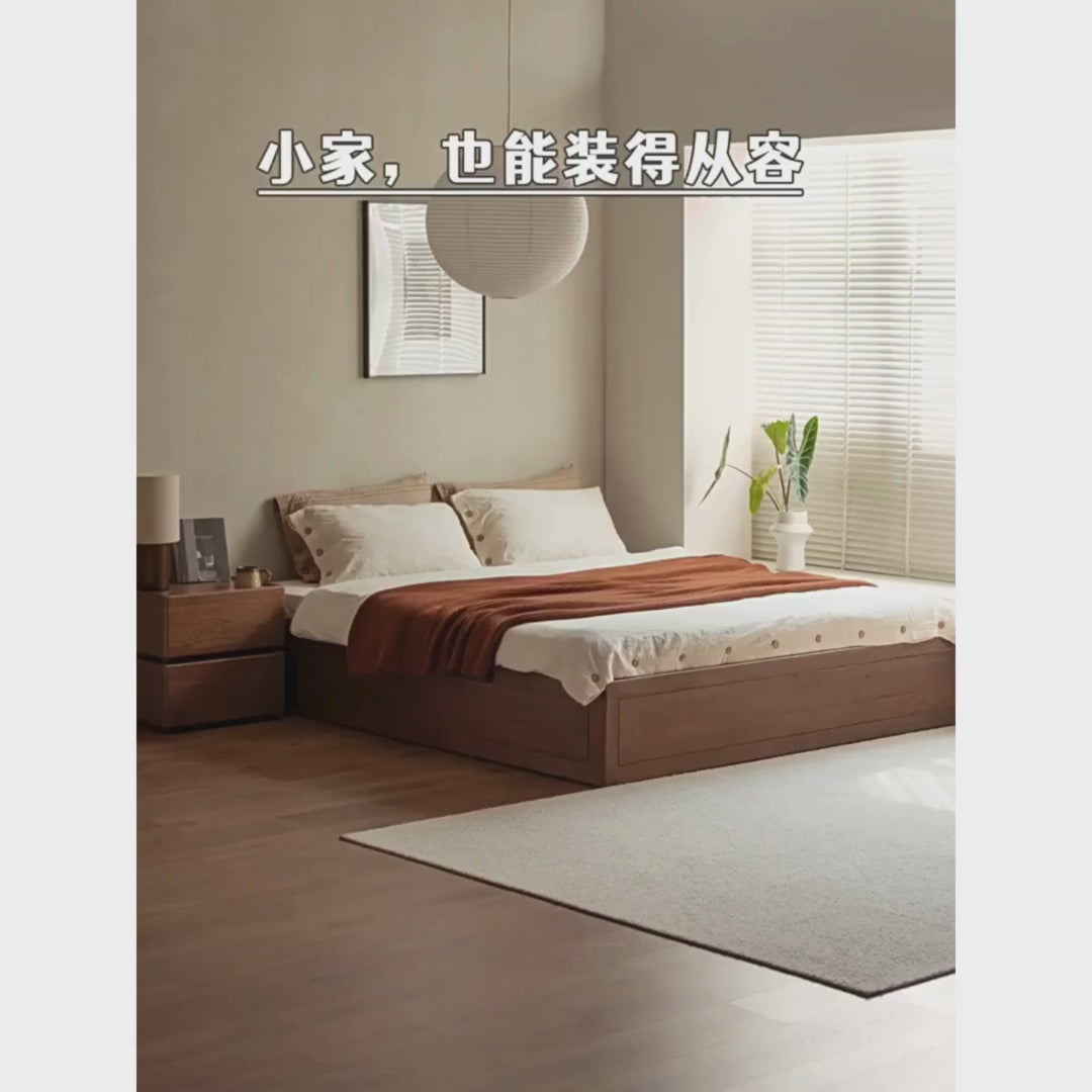 Black Walnut Solid Wood Italian Light Luxury Platform Bed, Headboard-Free Box Bed