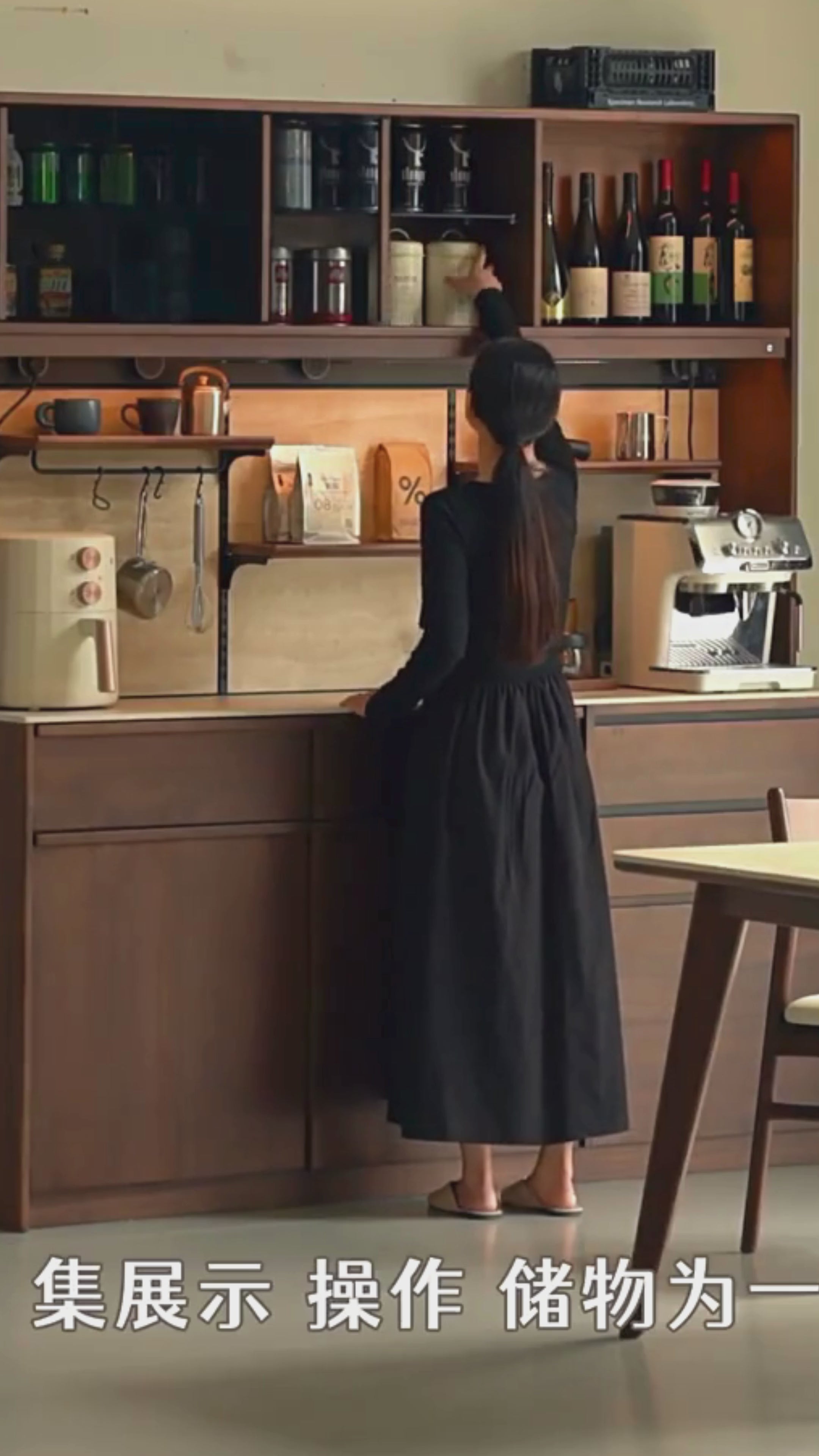 Black Walnut Solid Wood Side Cabinet with Light Luxury Finish, Sideboard