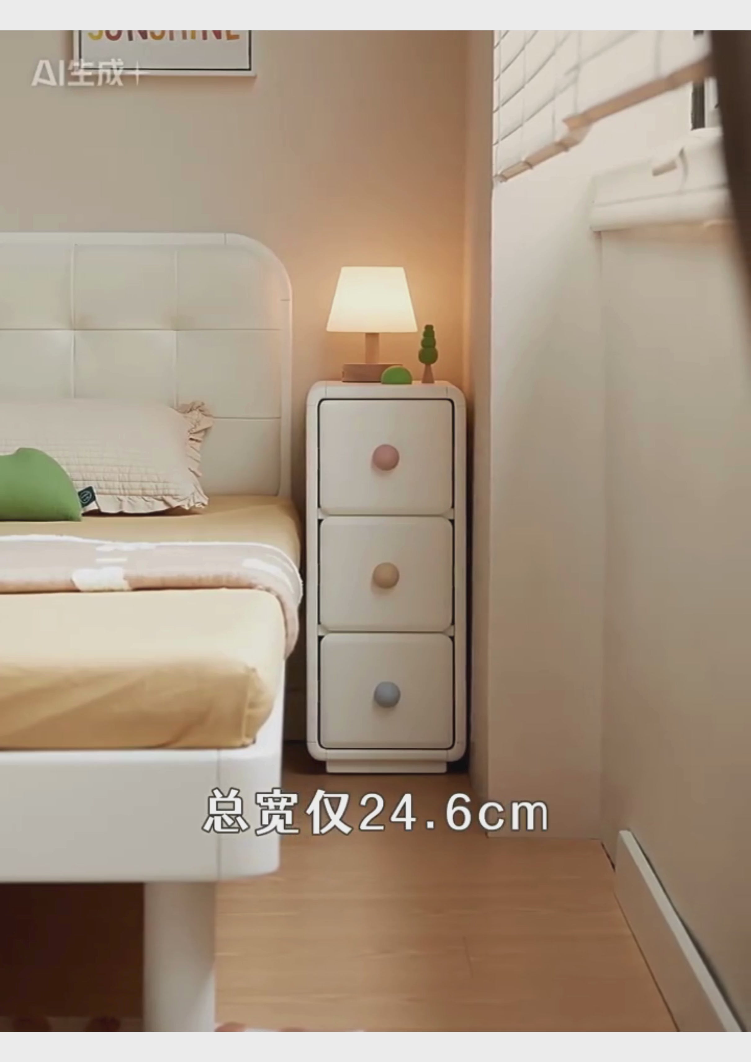 Solid Rubberwood, Beech Solid Wood Cream Style Ultra-narrow Children's Nightstand