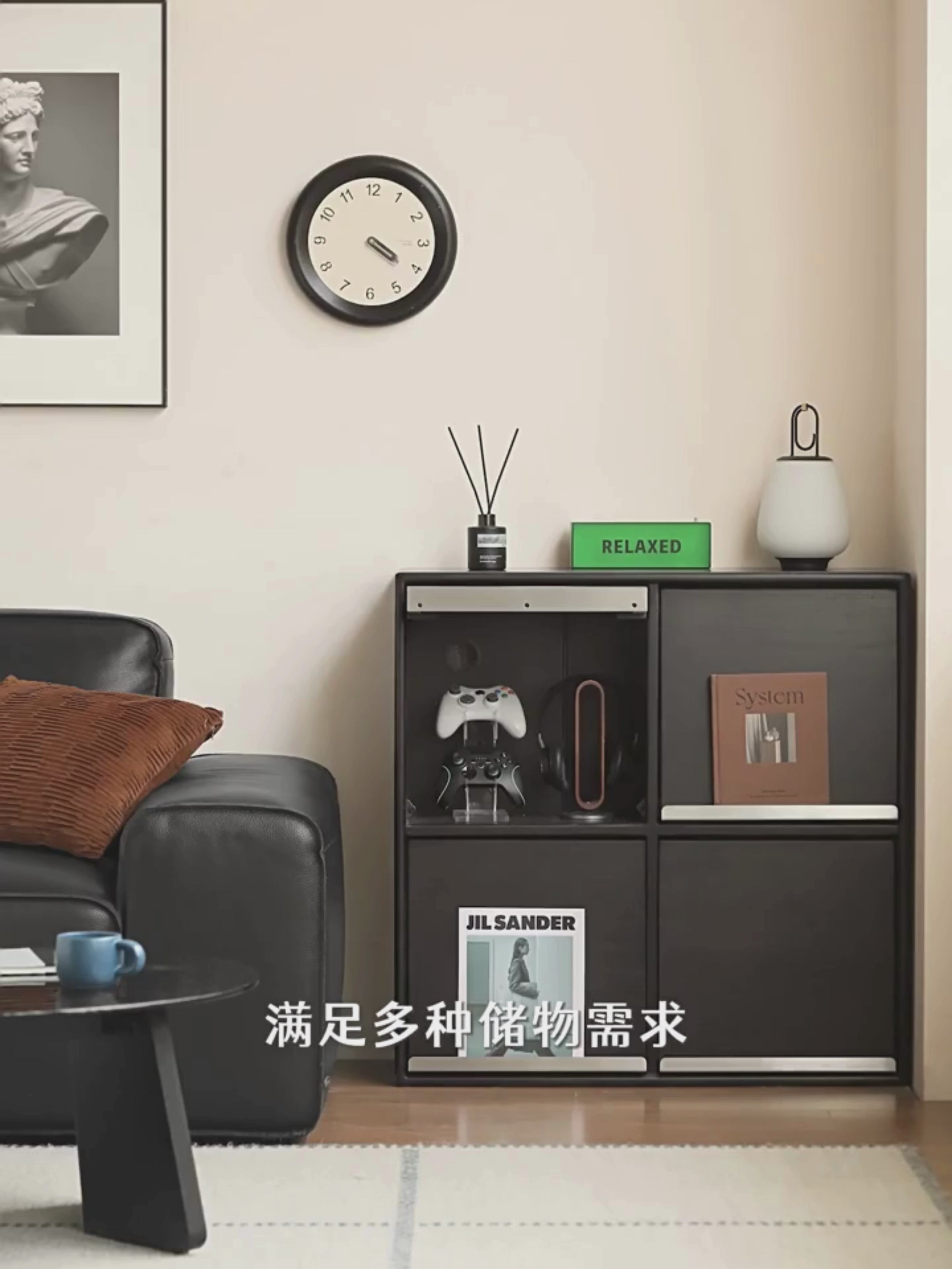 Oak Solid Wood Black Storage Combination Module Cabinet.