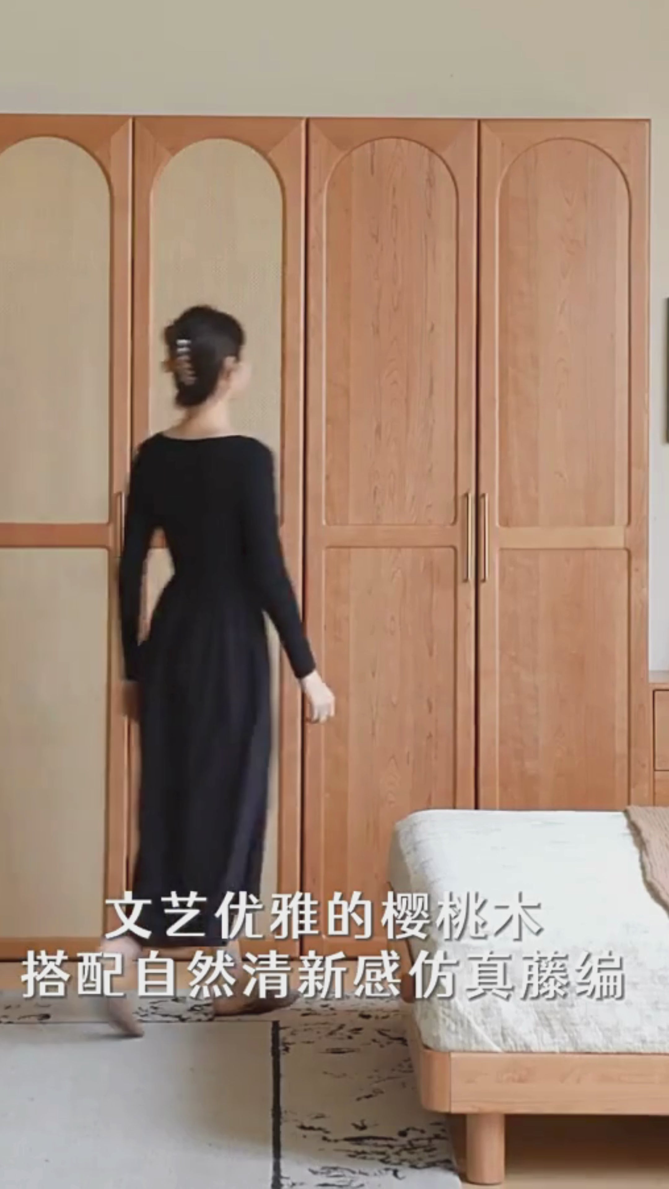 Oak Solid Wood Free Combination Wardrobe Rattan Door.