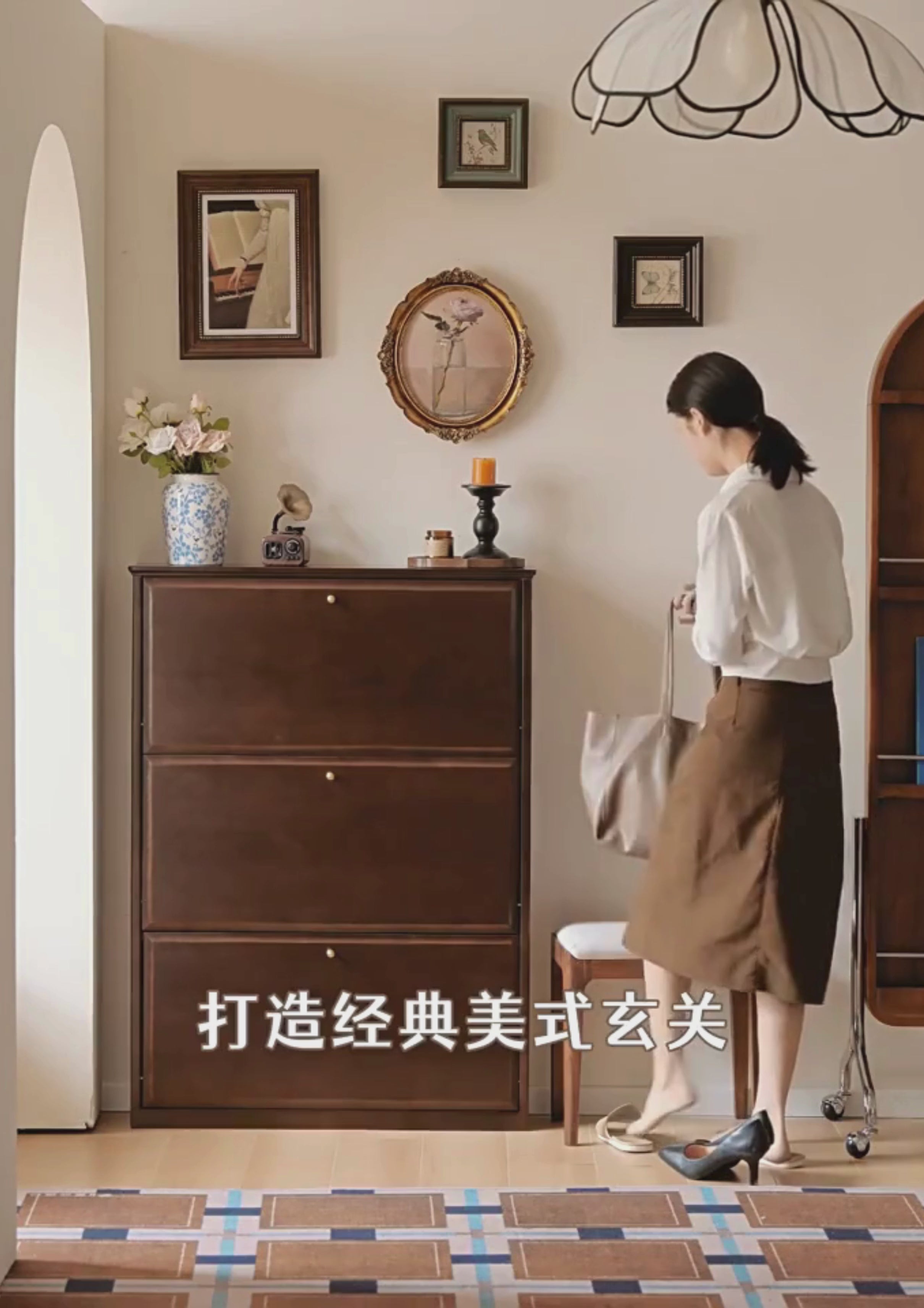 Sandalwood Solid Wood American Retro Storage Shoe Cabinet