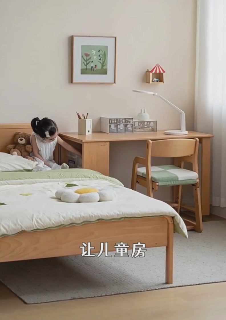 Beech Solid Wood Children's Raised and Lowered Study Table