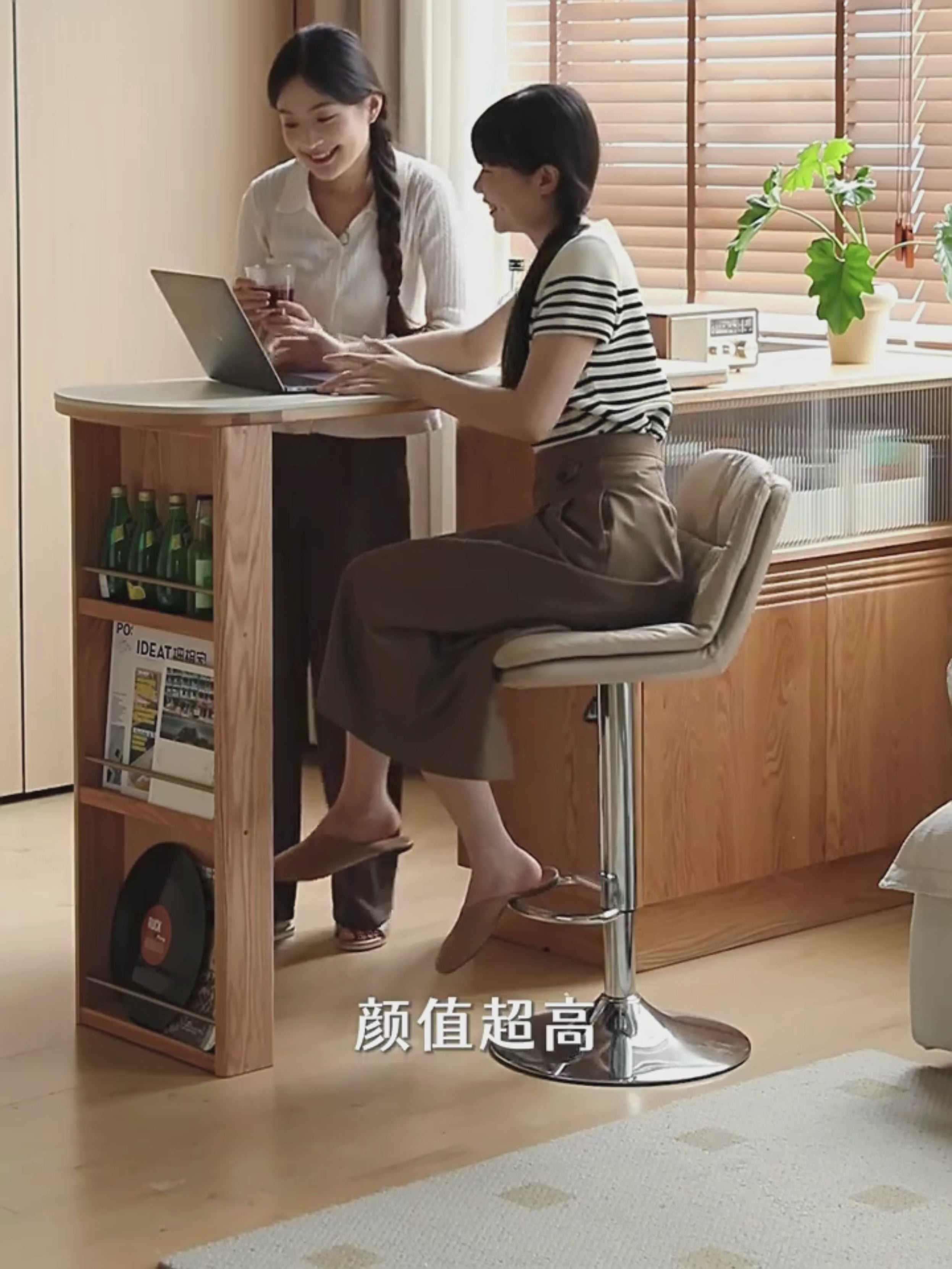 Bar Chair Restaurant Modern Simple Home Swivel Lift Chair Organic Leather Cream Style High Chair