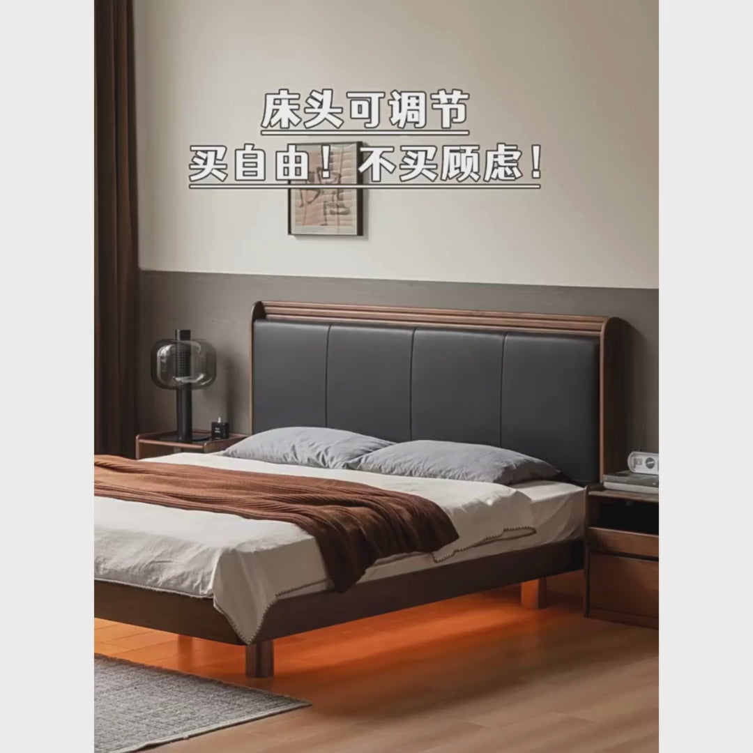 Black Walnut Solid Wood Luxury Leather with Light Bed