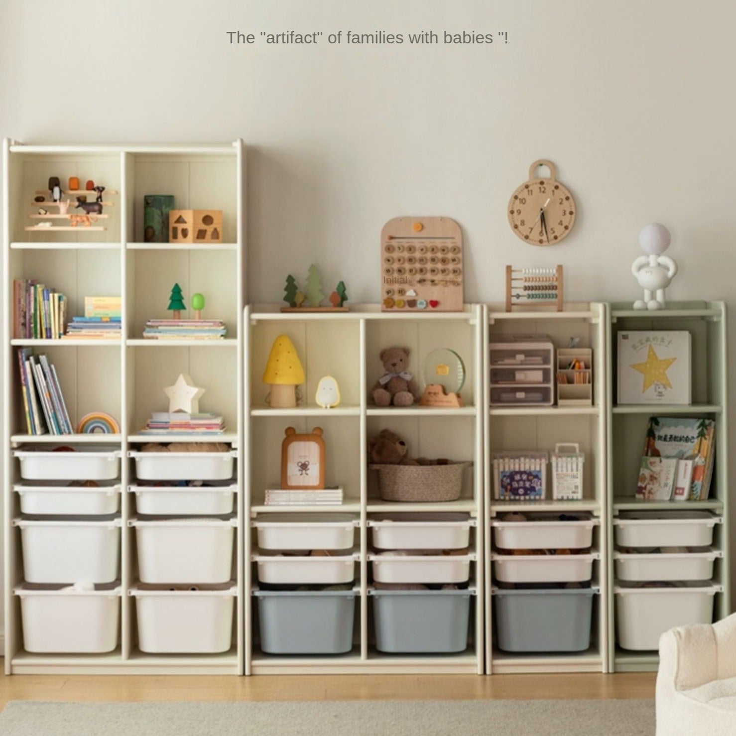 Free combination and matching, you can create a storage system on one wall or use it alone, filling the layout of the corner/open partition + storage box in the home, so that the mother can take care of the bottom and the children can store independently. Not afraid of toys "running around with long feet"!Have fun and worry-free storage