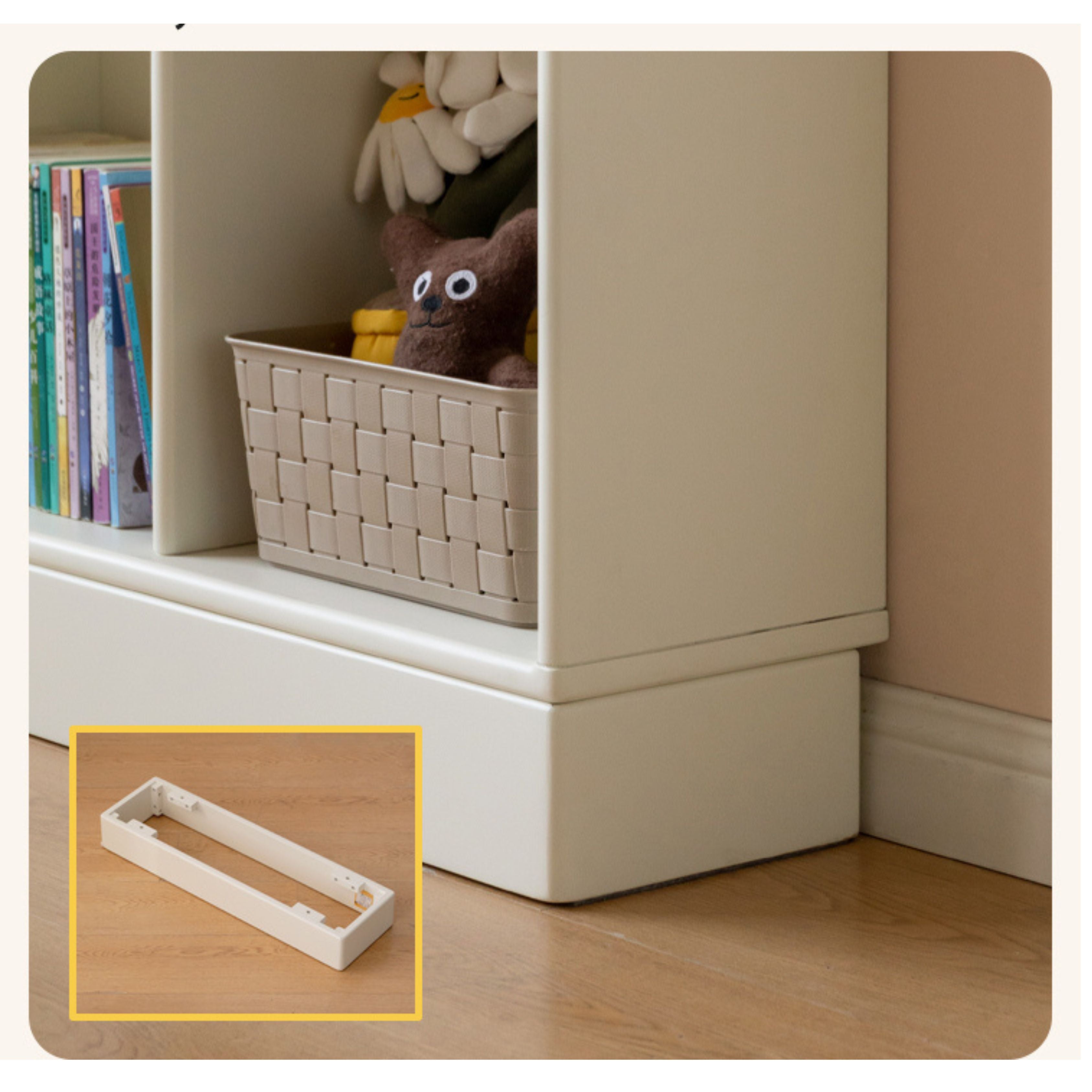 Rubber Solid Wood Cream Style Children's Free Сombination Bookshelf.