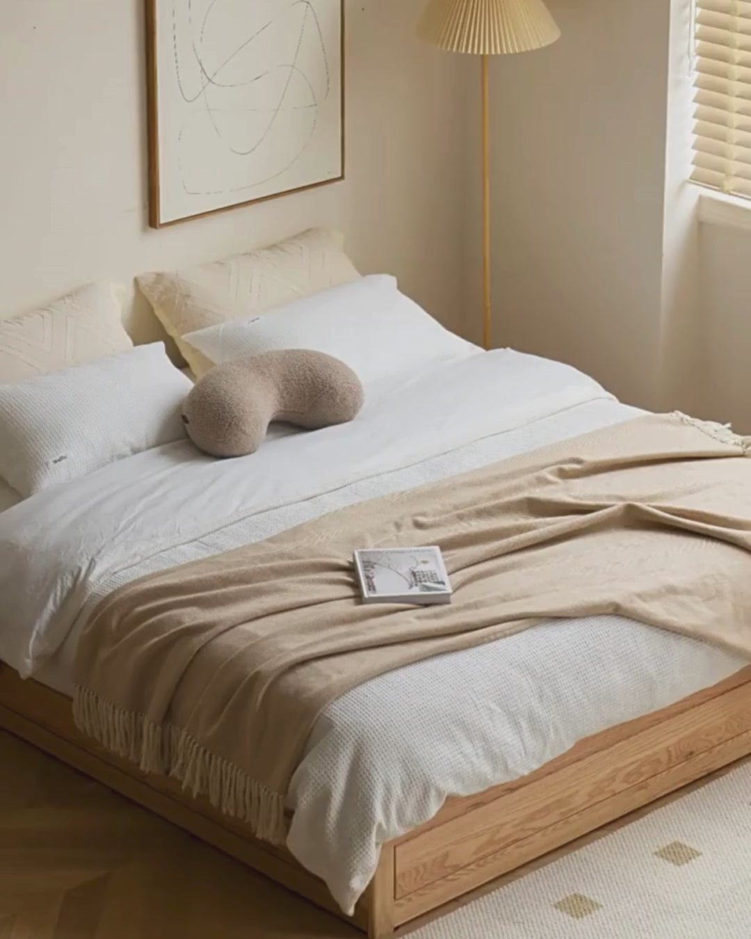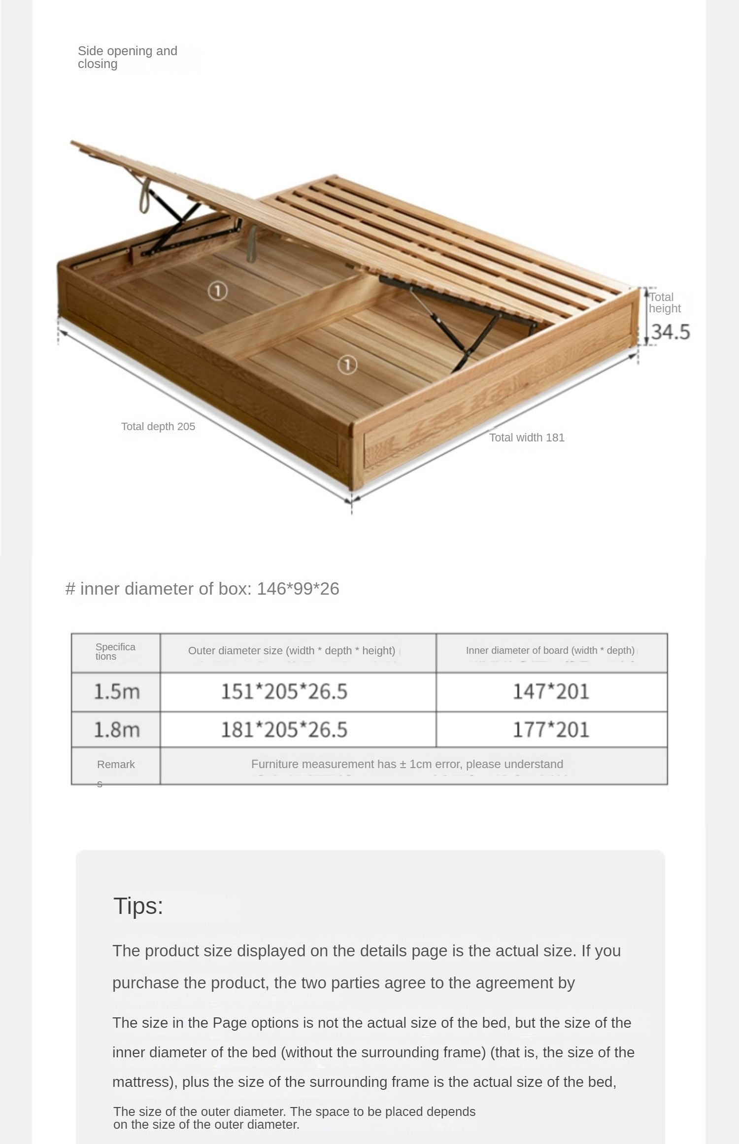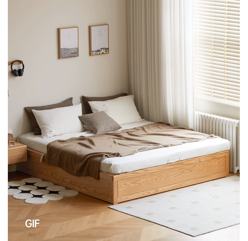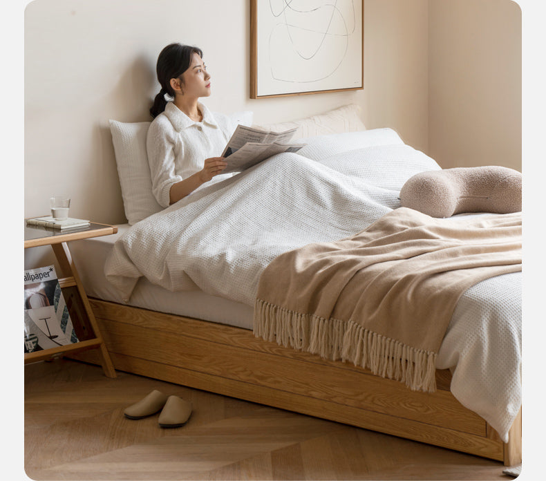 Oak solid wood platform bed, headboard-free Box bed