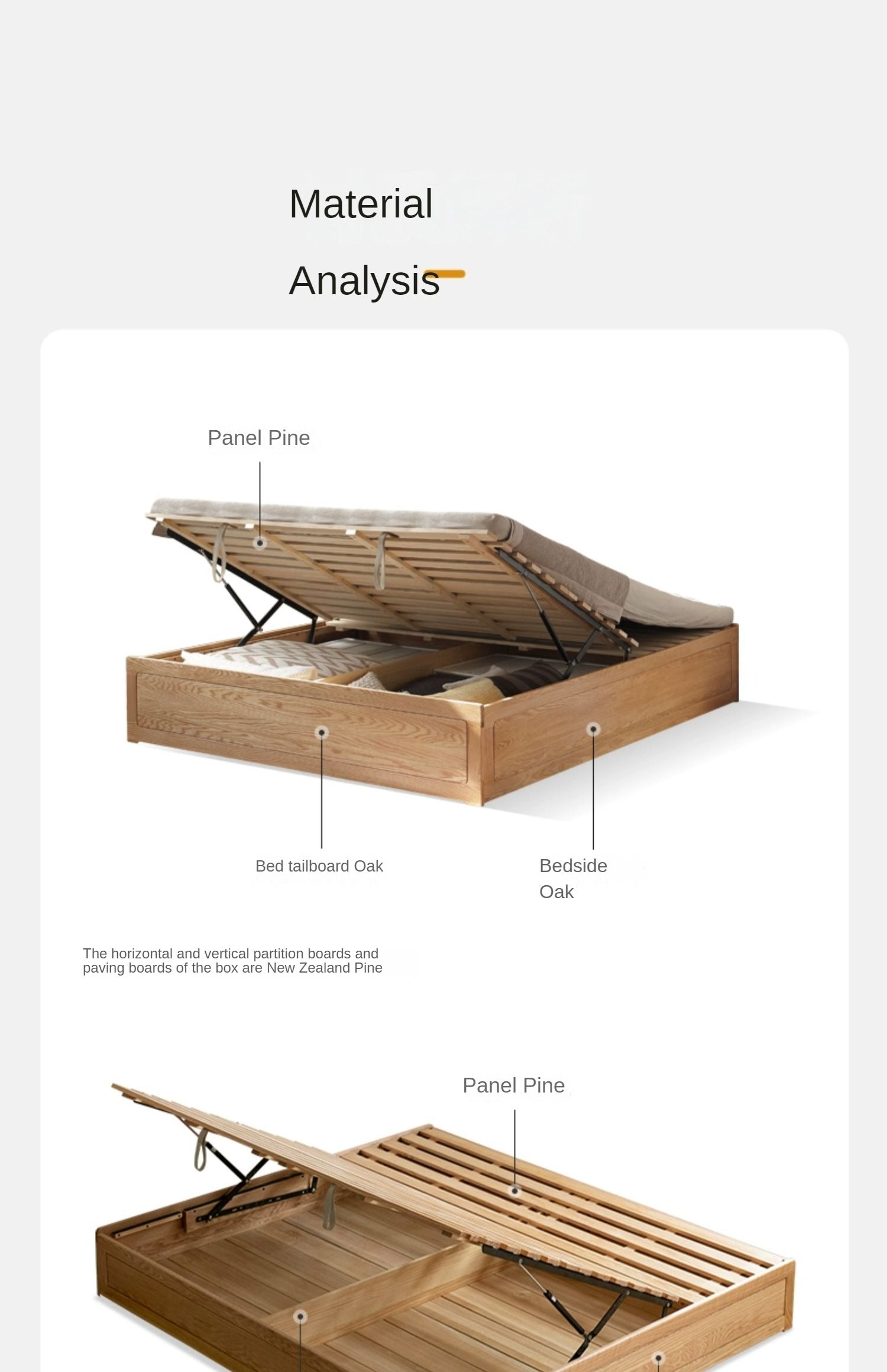 The whole product is made up of 100% pure solid wood,-without any artificial boards, -without veneer,-without spliced boards, all natural.