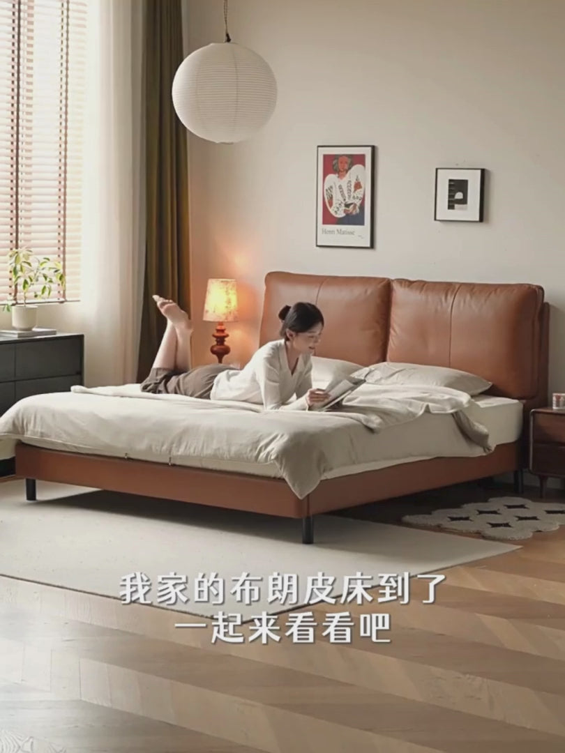 Leather bed bedroom light luxury first layer cowhide soft-packed bed modern minimalist non-disturbing double bed