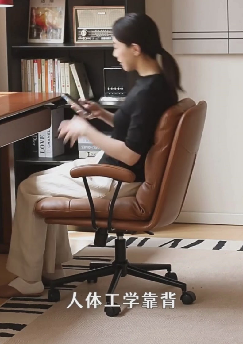 This office armchair features a sturdy iron frame with wooden support and comfortable doll cotton padding. The seat and backrest are filled with doll cotton and covered in genuine leather and PVC for durability and comfort.