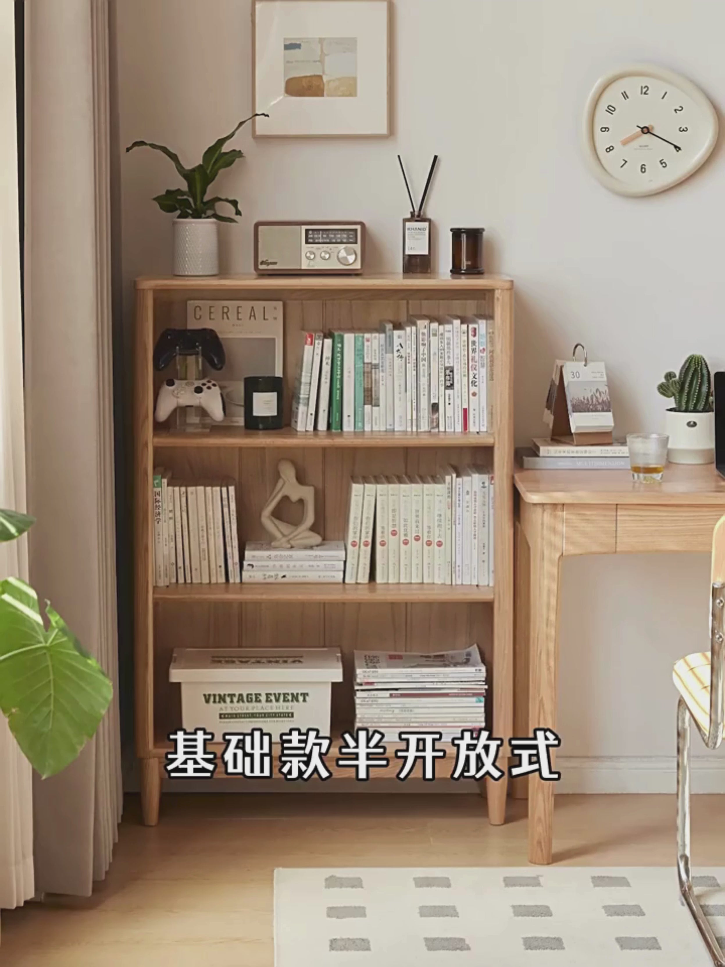Oak solid wood bookcase modern simple study open grid storage cabinet oak home cabinet low cabinet