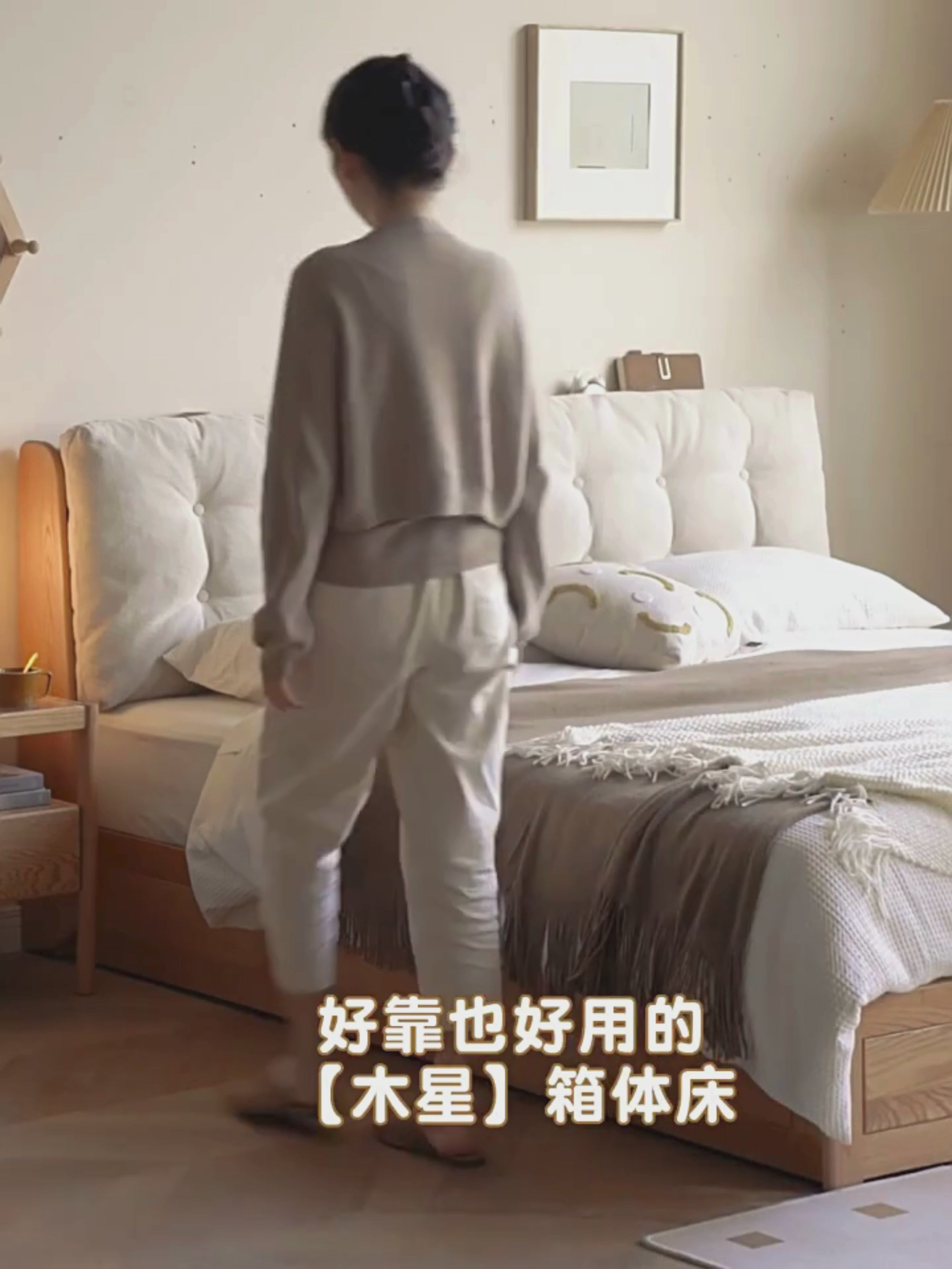 A solid wood bed that sleeps well and can be installed~ The head of the bed is full and big, and the back feels Q elastic and comfortable With the large storage box under the bed, the storage space has become larger, which is really nice!