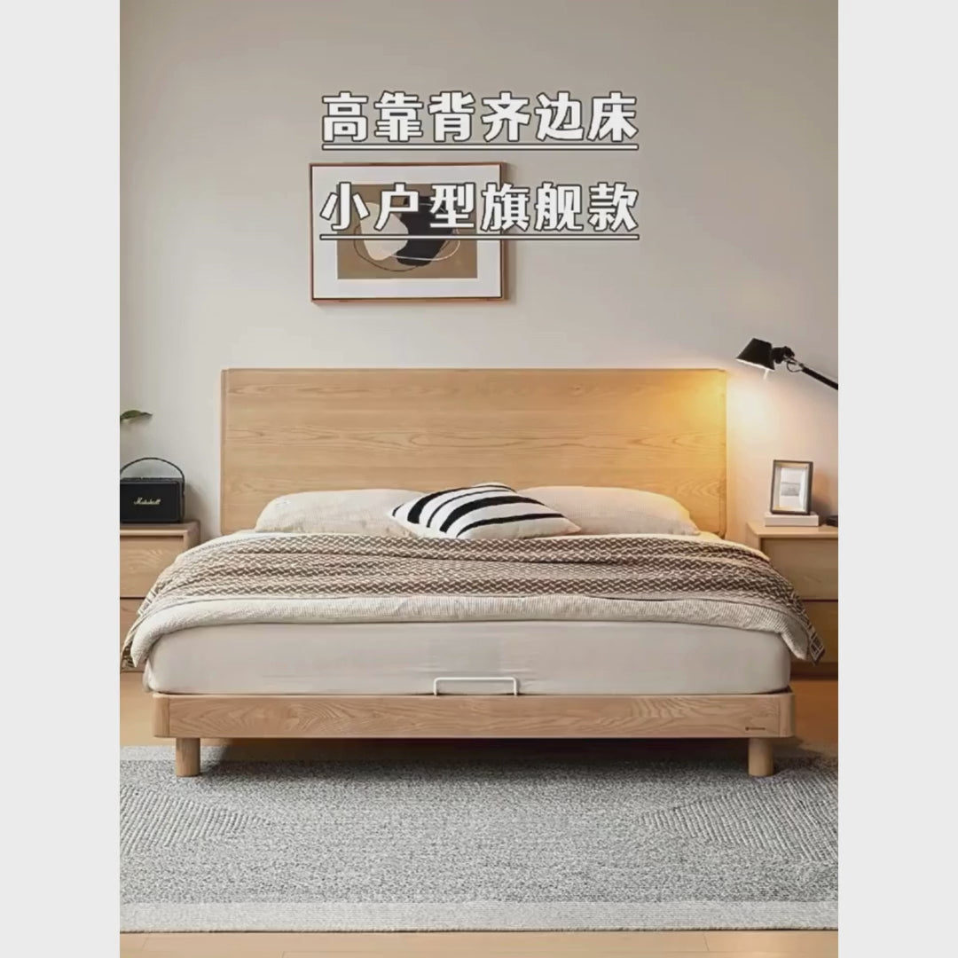 Ash Solid Wood Large Slab Bed Modern Minimalist
