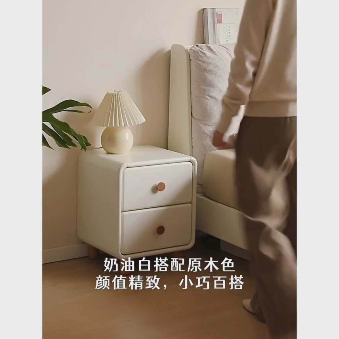 Poplar Solid Wood, Solid Rubberwood Nightstand Cream Style White Cabinet)