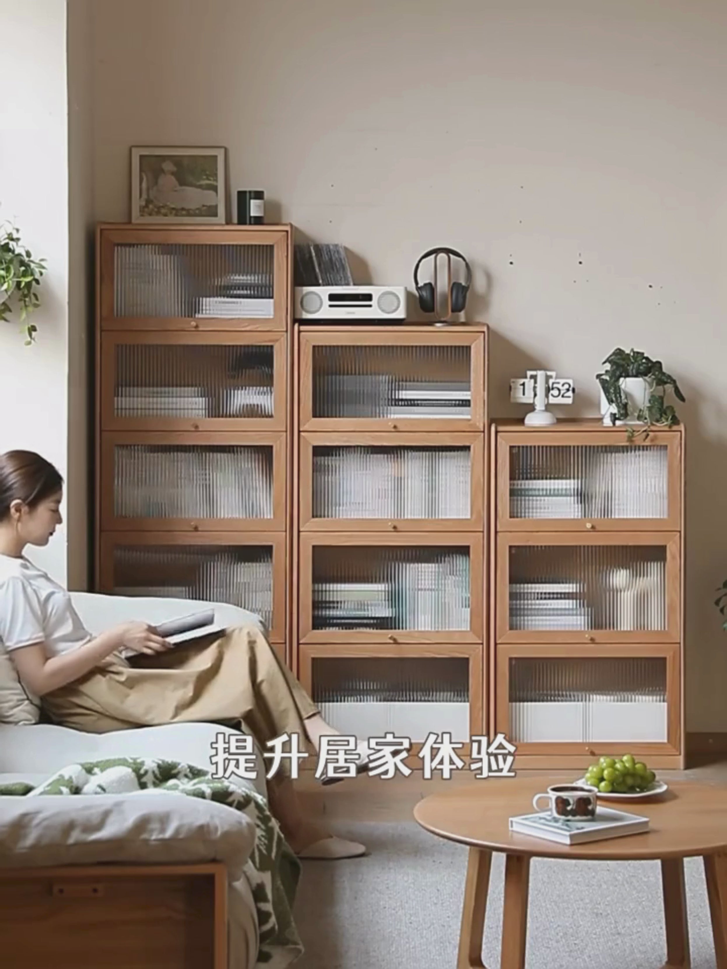 Oak Solid Wood Flipped Door Side Cabinet Free Combination