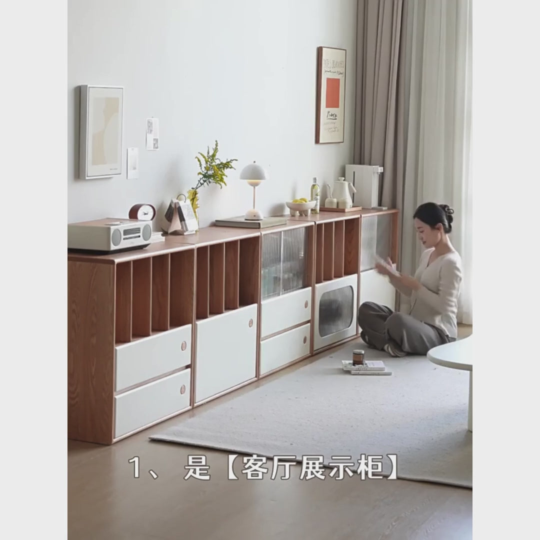 Oak solid wood bookcase study room cream style storage locker oak home module combination TV cabinet