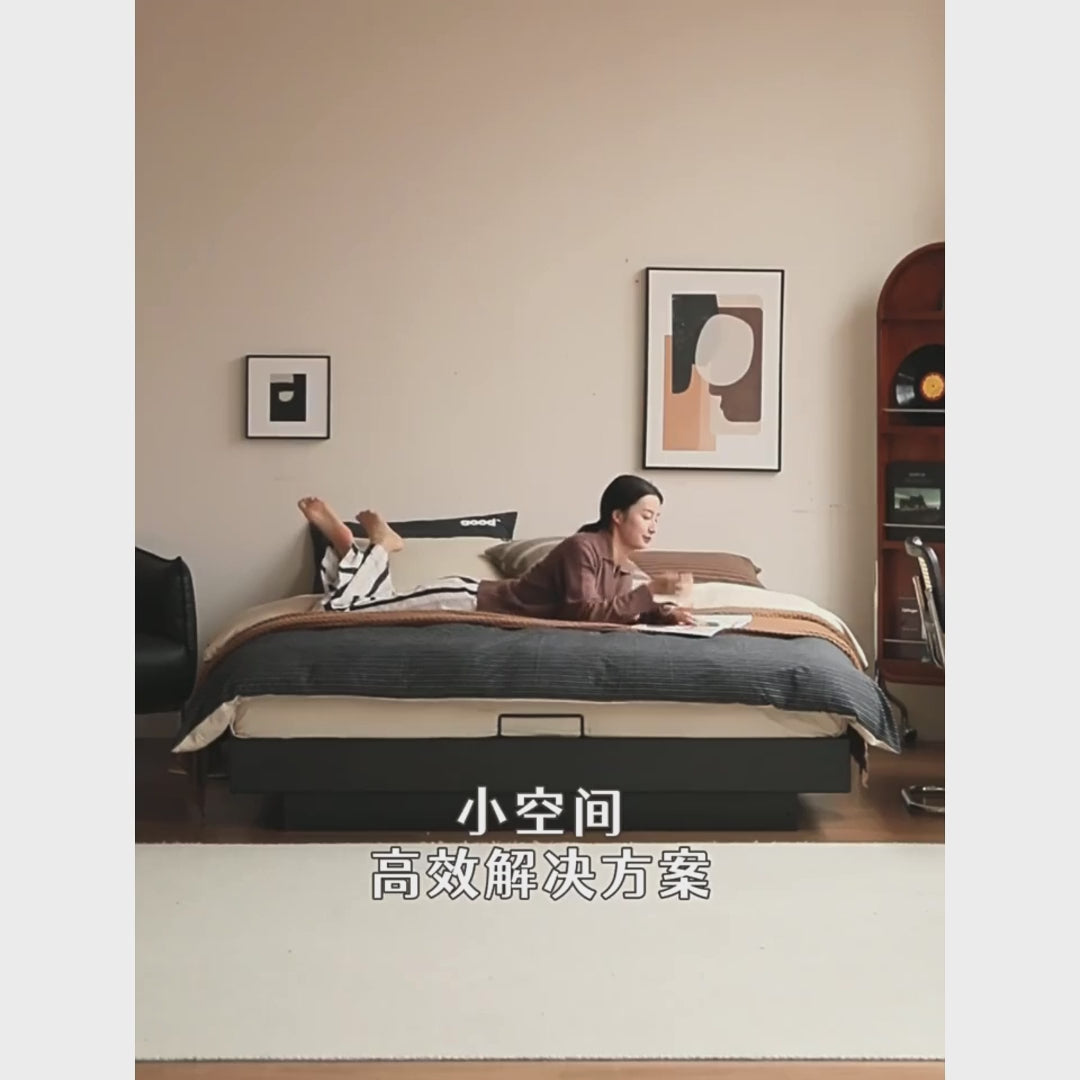 Oak Solid Wood Suspended Box Platform Bed, Headboard-Free Bed.