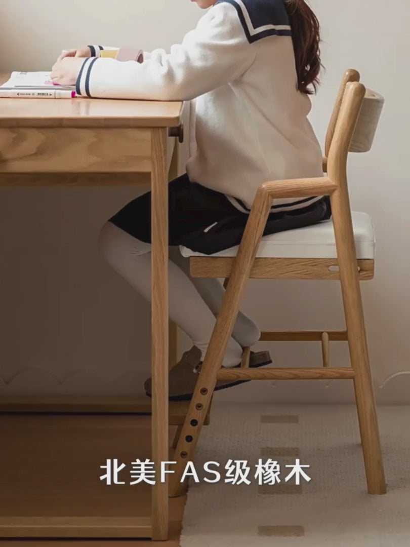 Oak Solid Wood Kids Chair Height-Adjustable.