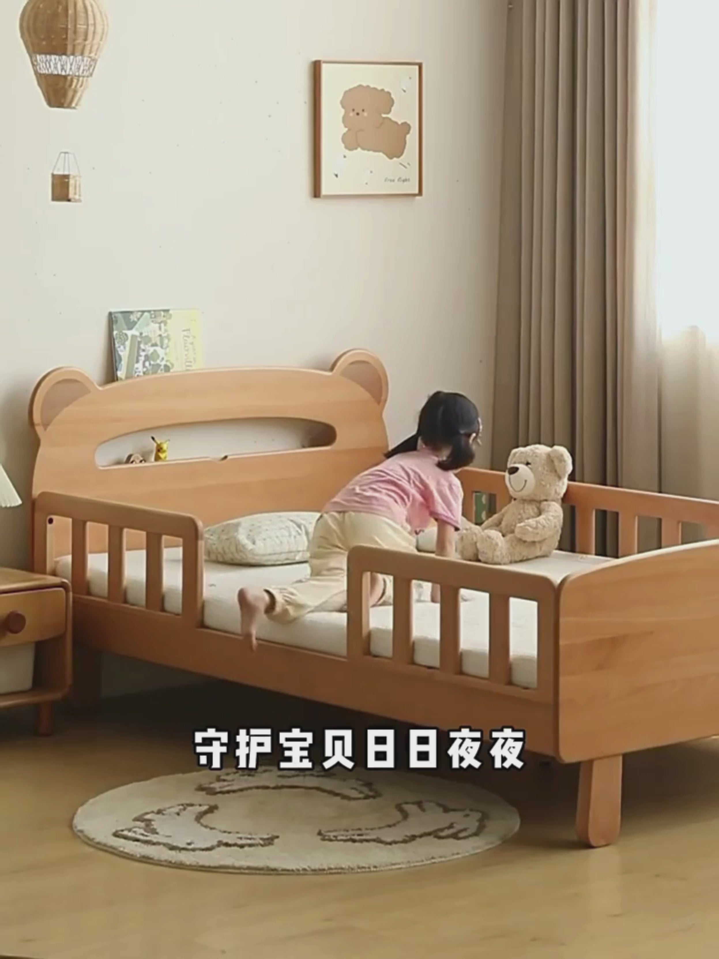 The pre-bed stage 01 removes the unilateral guardrail and splices the adult bed (cultivates the child's awareness of sleeping alone) (easy for parents to take care of at night)