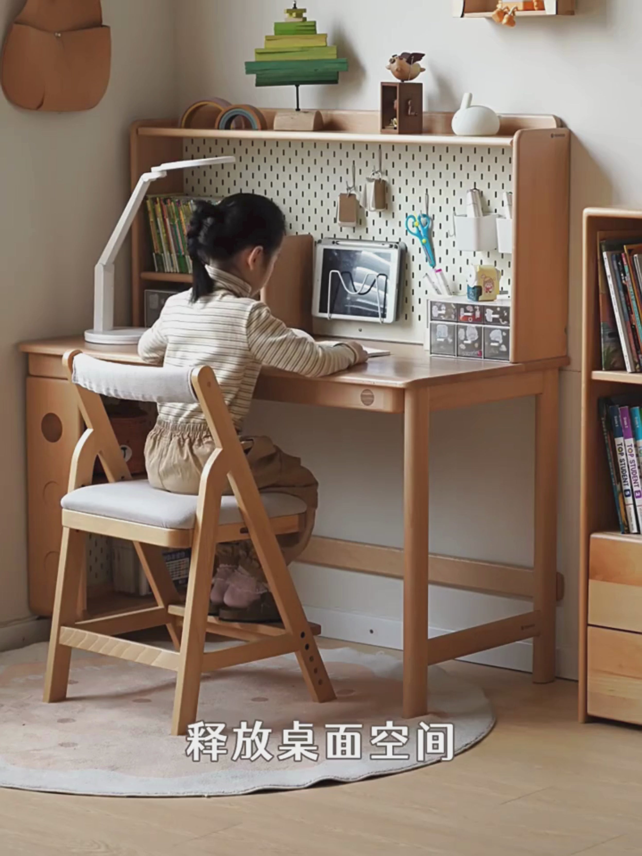 Beech Solid Wood Children's Study Table Bookshelf Integrated