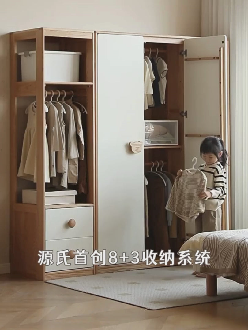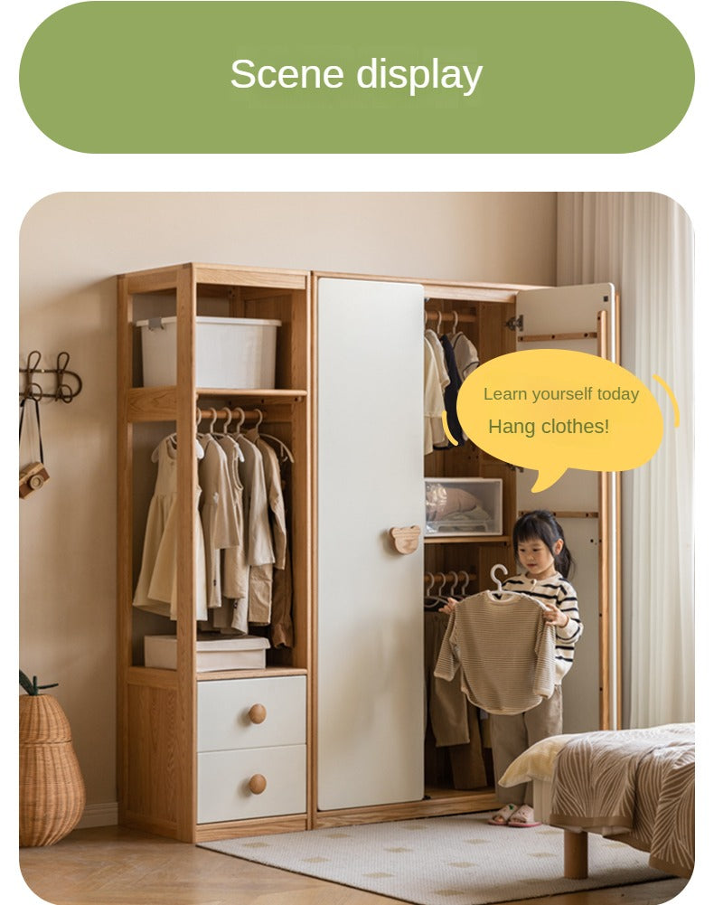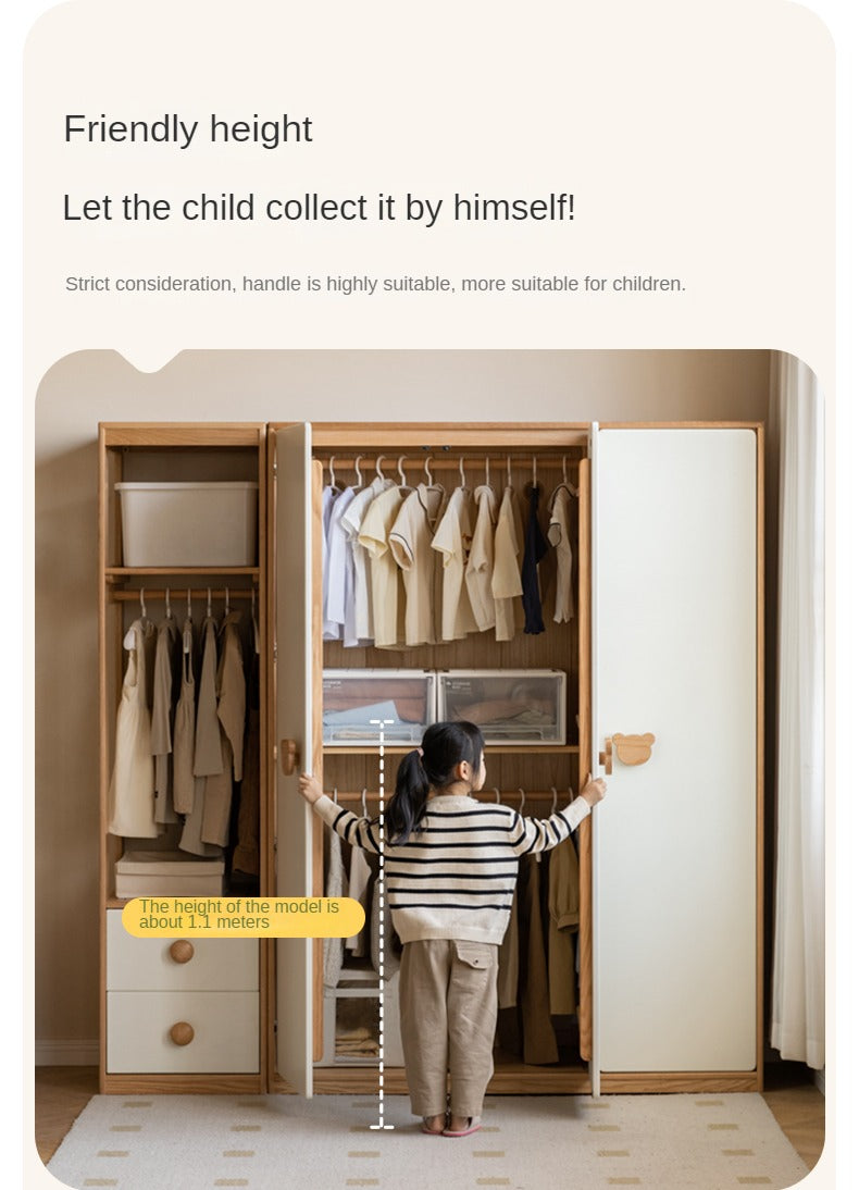 Solid wood children's wardrobe combination simple boy and girl small apartment wardrobe bedroom home storage cabinet.