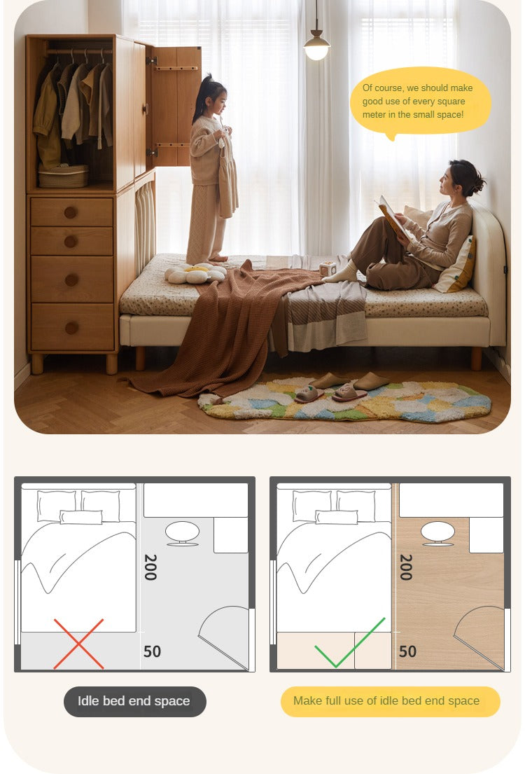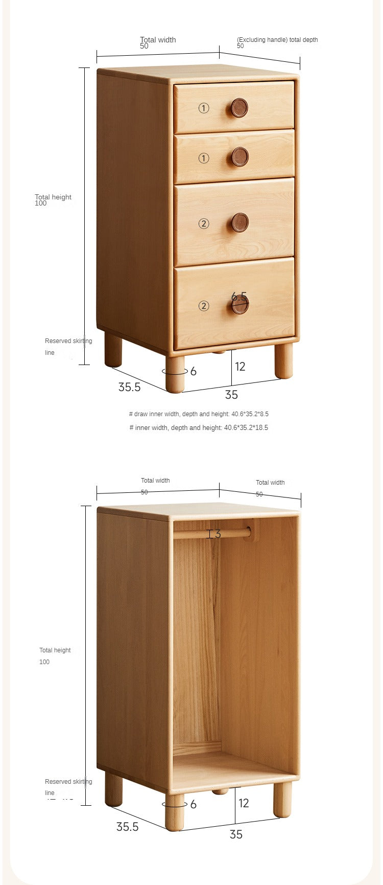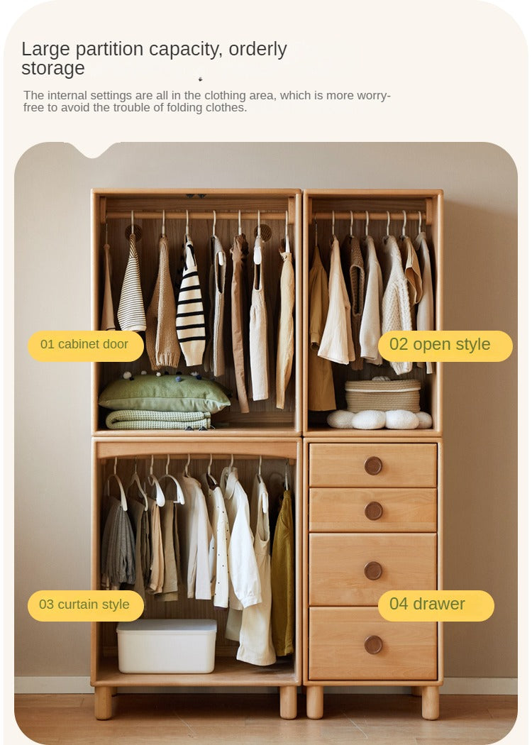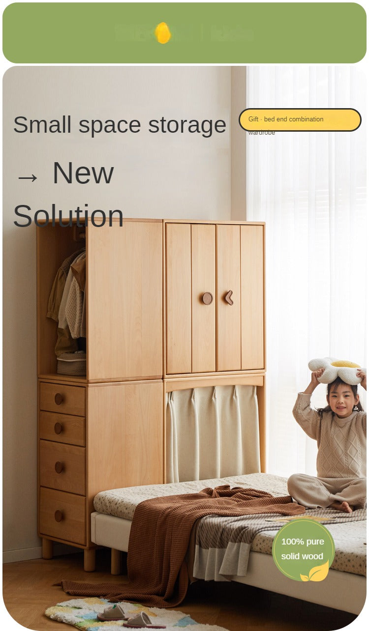 Beech, Rubber Solid Wood Children's Wardrobe,Combination Storage Cabinet