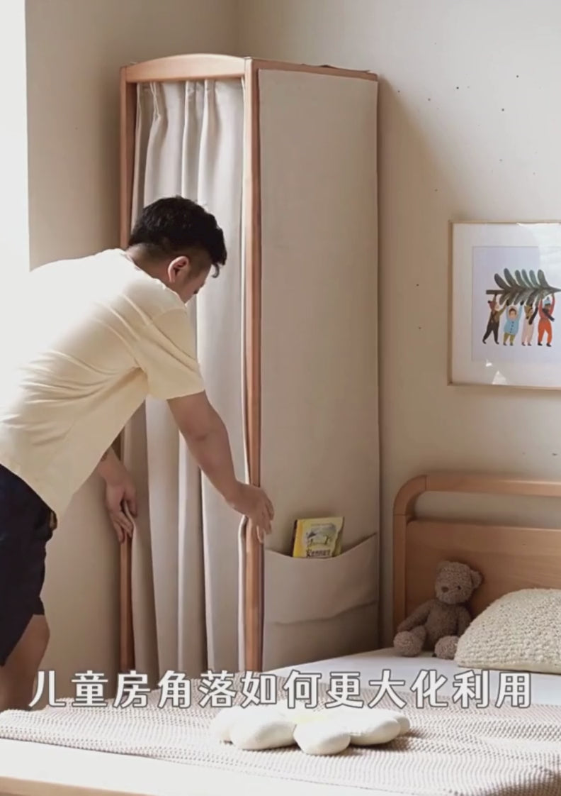 How to make greater use of the corners of the children's room?Just look at this wardrobe!It is only 40cm wide and covers an area of about one bedside table. It can be used for boarding, hanging, and storage!The four-sided cloth has a permanent design, refreshing and breathable, removable and washable design, and you are not afraid of getting dirty!