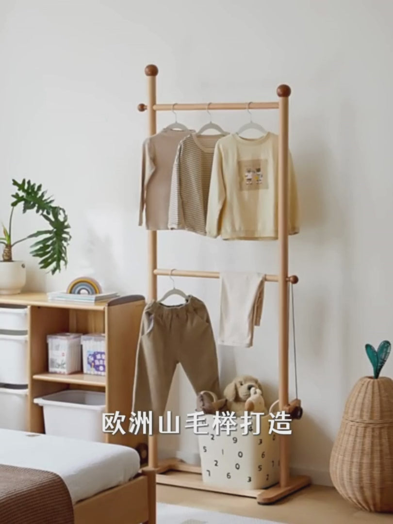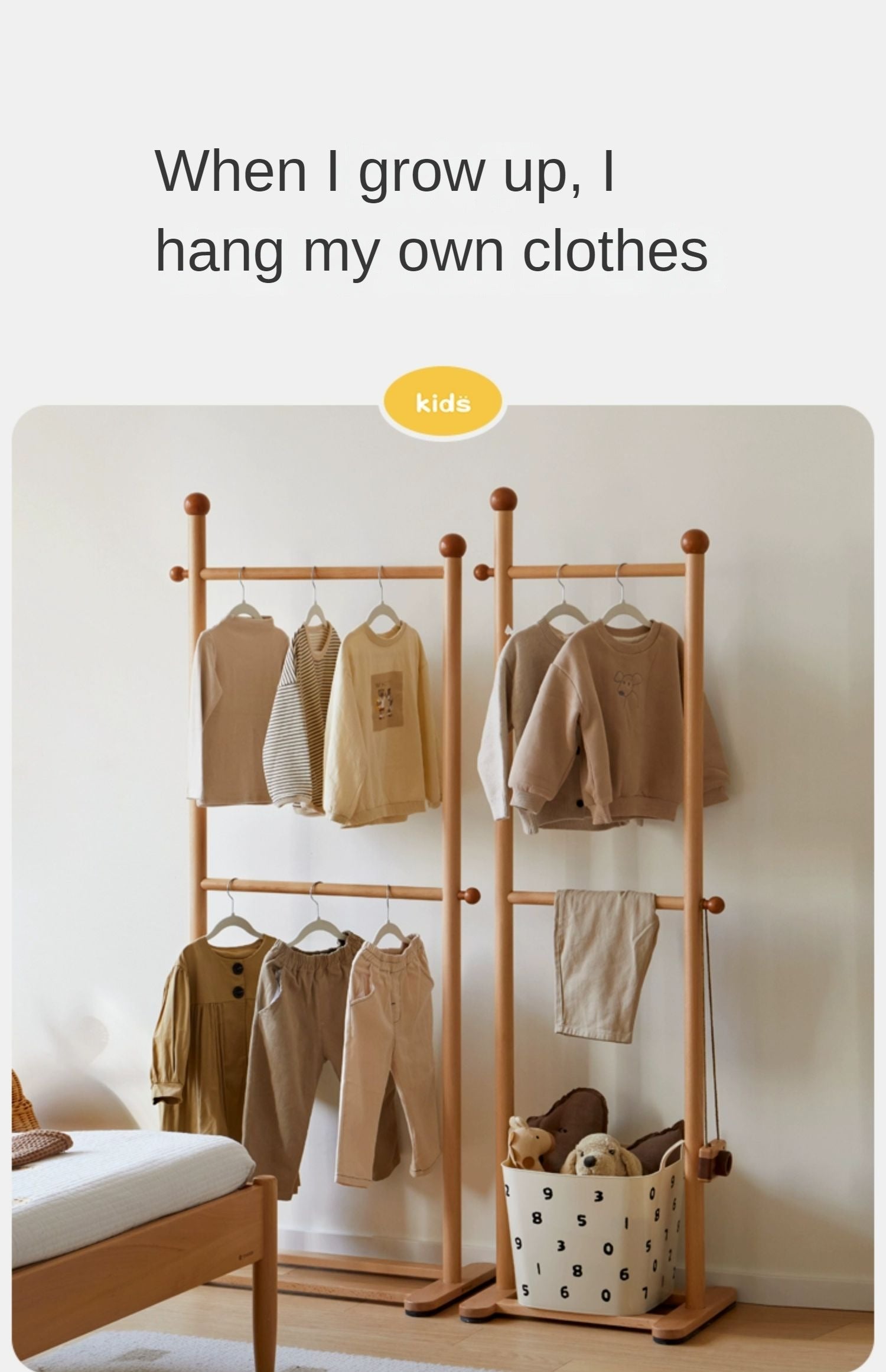 Beech, Oak Solid Wood Coat Rack for Children's Bedroom Clothes Hanger