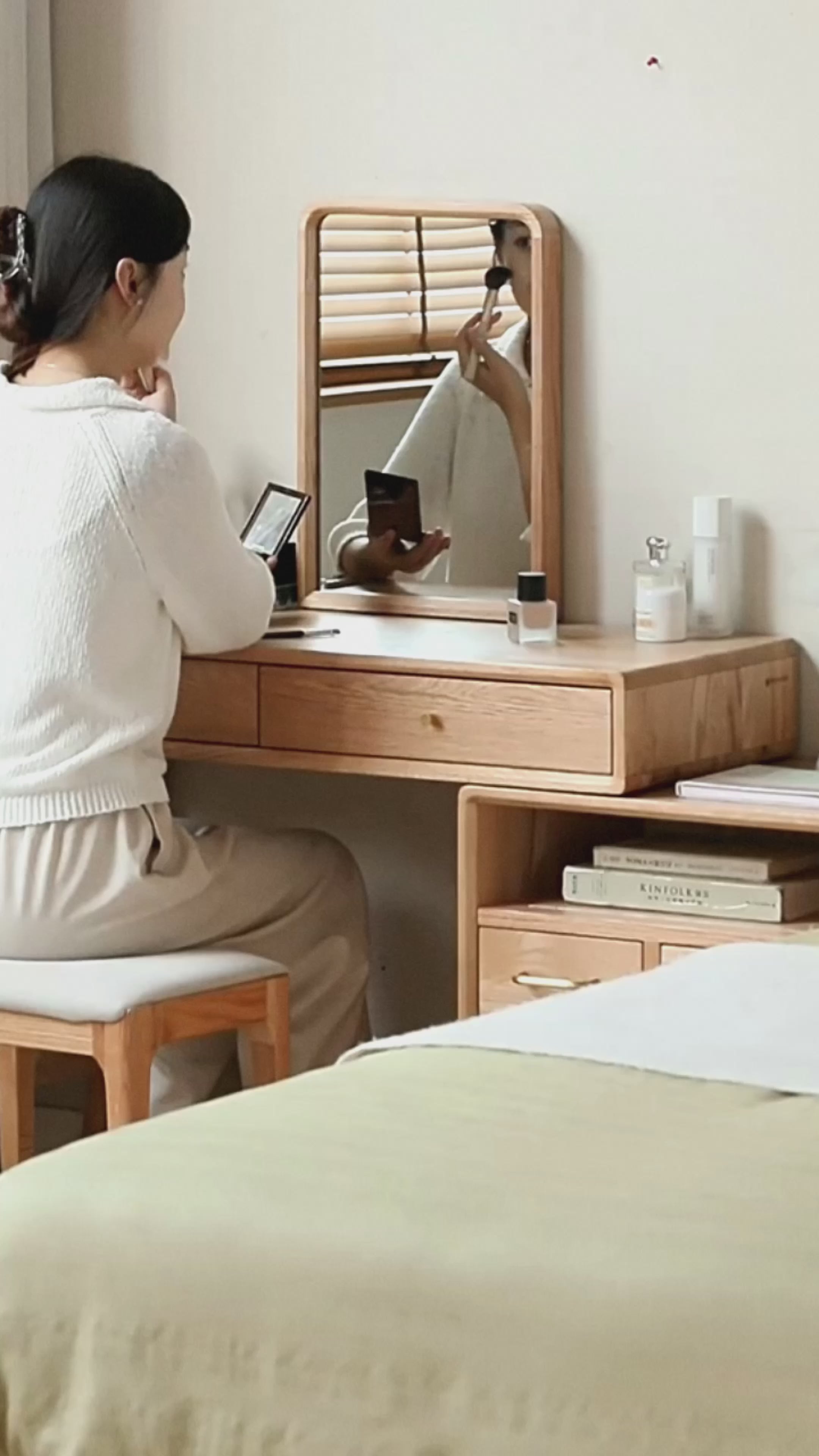 Oak Solid Wood Telescopic Dressing Table Cabinet.