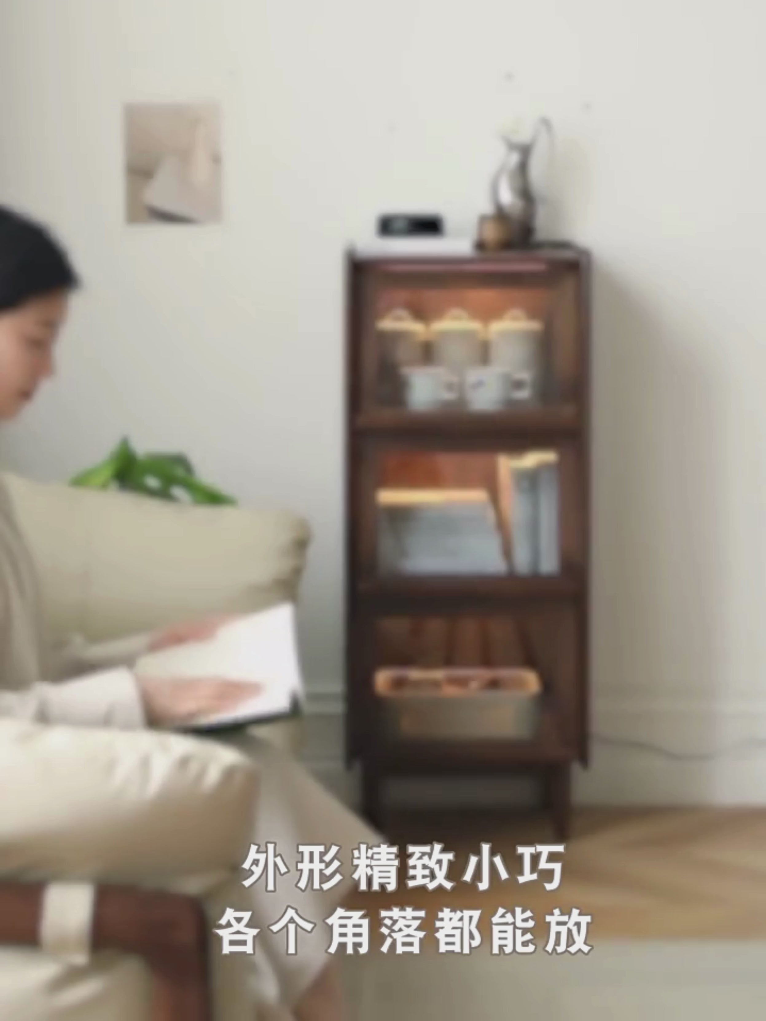 Black Walnut, Oak Solid Wood Glass Flip Door Display Side Cabinet LED Lights