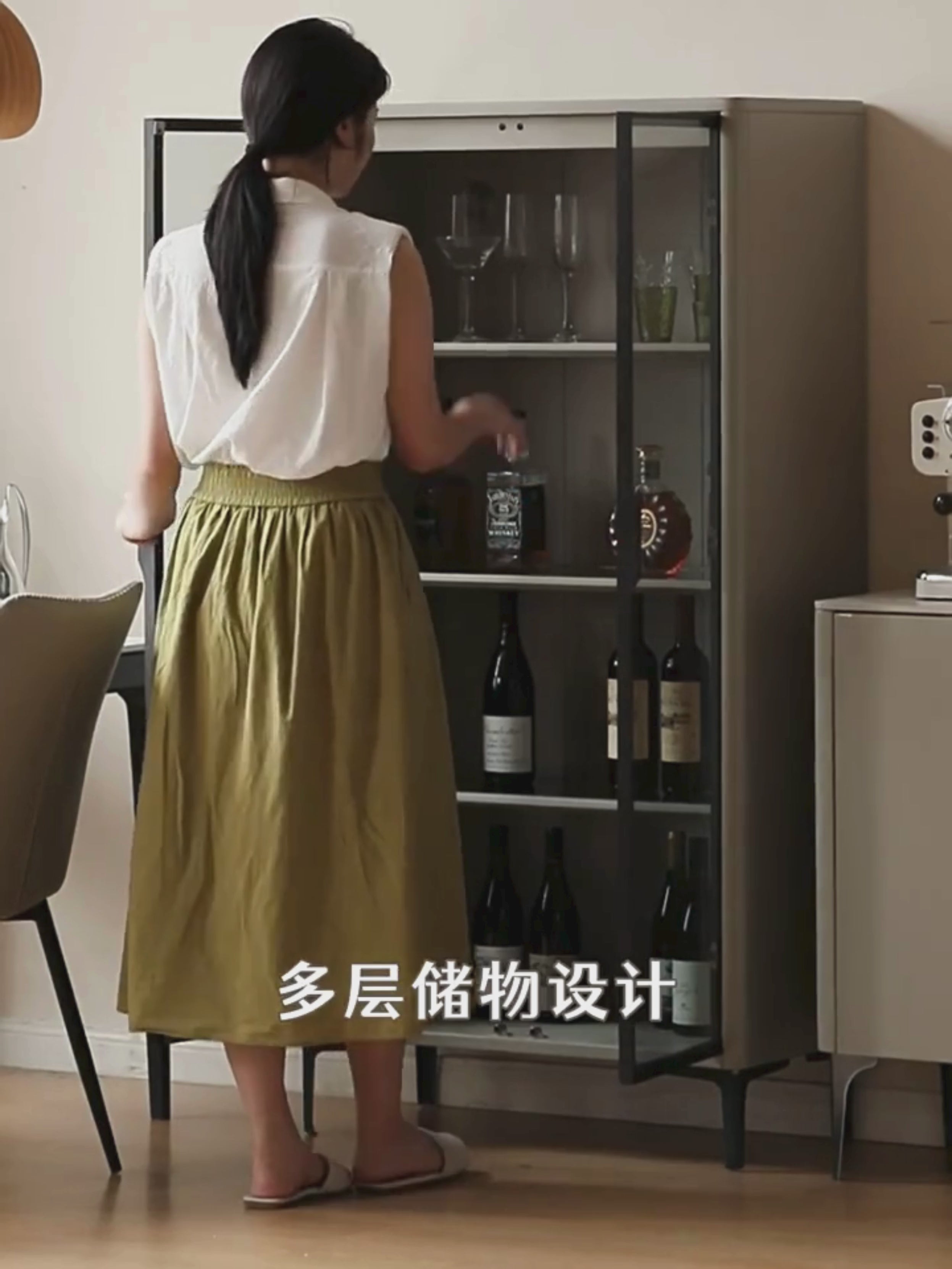 Poplar Solid Wood Wine Cabinet, Luxury Glass Door Display Cabinet LED lighting-