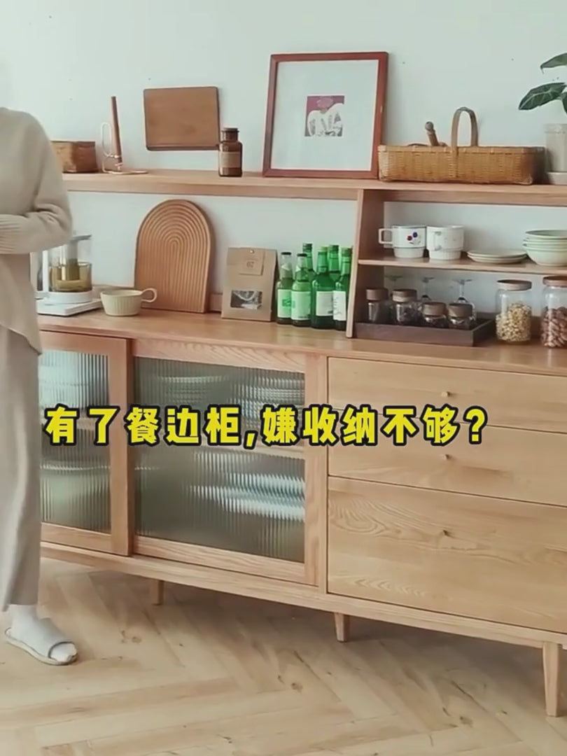 Oak Solid Wood, Solid Rubberwood Sideboard Shelf, Kitchen Shelf