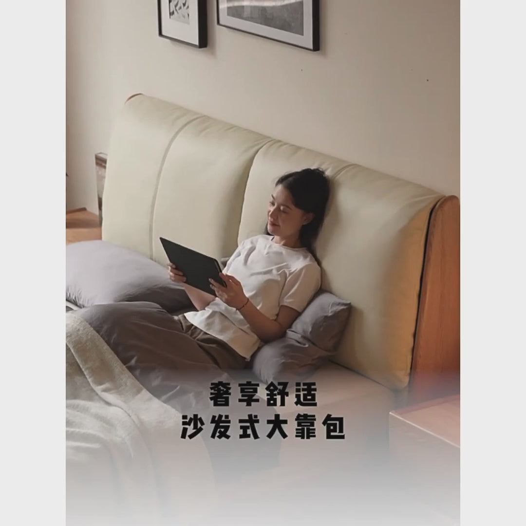 Oak, Ash Solid Wood Leather Soft Suspended Bed Italian Light Luxury