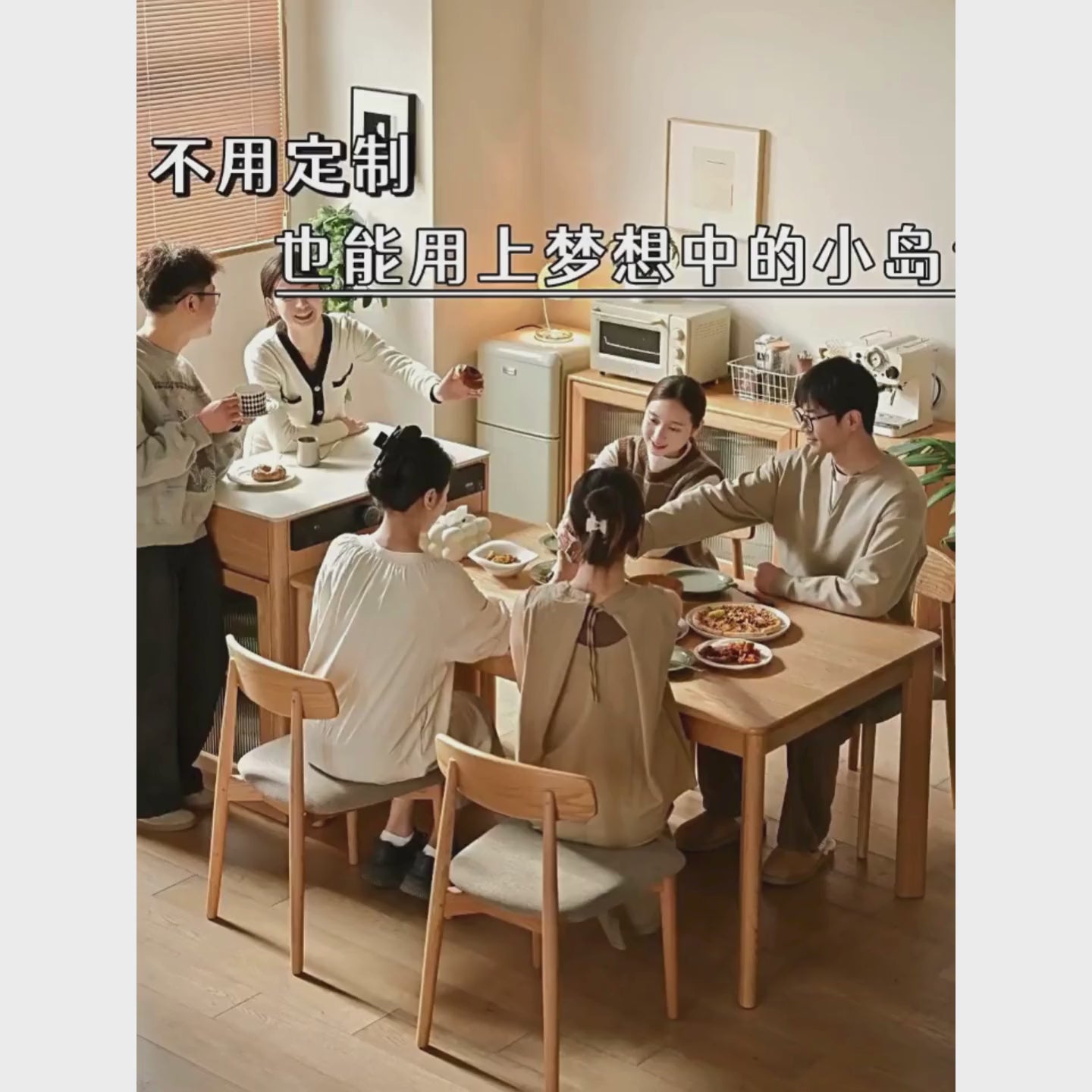 Oak, Beech Solid Wood Modern Rock Plate Island Table