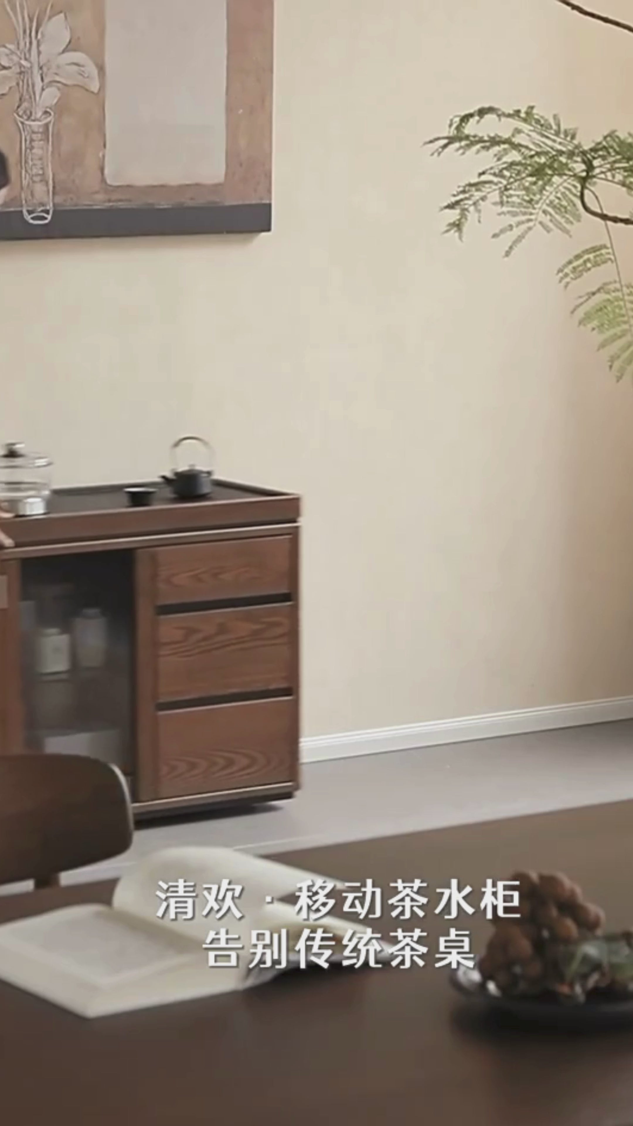 Ash Solid Wood Mobile Tea Cabinet Kettle Integrated